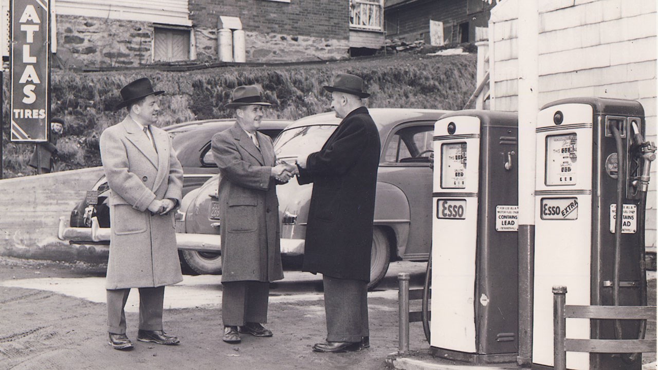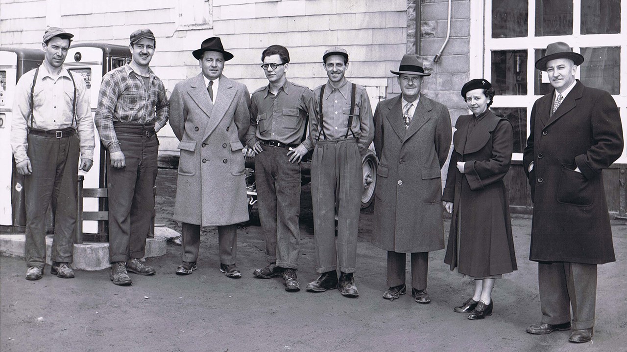 La plupart ont connu ce garage qui vendait des pneus sur la 2e avenue jusqu’en 2010. Ce commerce fut fondé en 1938 par Jos Saint-Hilaire qui était alors âgé de 32 ans. Né à Saint-Anges en 1905, celui-ci a exercé plusieurs occupations, jusqu’à son mariage en 1932. Cantonnier (ouvrier chargé de l’entretien des routes) de 1932 à 1936. Agriculteur sur une terre à St-Zacharie en 1937 mais vend sa terre au bout d’un an et vient s’établir à St-Georges dans l’espoir de trouver quelque chose plus à son goût. Il s’en va alors à Toronto pour la compagnie Goodyear et y apprend le métier de vulcanisateur, ce qui sera décisif pour son avenir. À son retour, il prend la décision d’ouvrir un garage de vente et service de pneus et choisit de l’installer sur un site stratégique, la 2e avenue. C’était alors une artère importante, la route nationale (route 23) entre Lévis et Jackman. On y trouvait plusieurs commerces majeurs dont trois hôtels et des garages vendant des automobiles. Il opte pour un modeste terrain vacant situé entre l’édifice A.S. Paquet et la rue Saint-Charles (119e rue). La 2e photo (une carte postale, vers 1936-37) nous fait découvrir ce terrain, c’était alors un champs, celui qui est clôturé, à droite. La construction a lieu en 1938. Sur la 3e photo, le garage est construit, à droite, c’est un petit bâtiment tout juste en bordure de la rue. À l’époque, il y avait beaucoup moins de circulation, les gens ne prévoyaient pas encore l’augmentation rapide du nombre de véhicules automobiles dans les années futures. Il a connu un succès immédiat et a réalisé au cours des ans que son établissement était beaucoup trop près de la voie publique, rendant son accès difficile aux véhicules. Il l’a donc soulevé (photo 4) et reculé plus loin sur le terrain, vers 1945. Comme l’achalandage augmentait constamment, il l’a agrandi à nouveau en 1950 pour en faire un immeuble avec deux portes de service et un entrepôt pour les pneus à l’étage supérieur. Sur la 5e photo, on voit M. Saint-Hilaire avec le représentant de la compagnie Goodyear lors de la réouverture après l’agrandissement de 1950. Pendant les périodes de changements de pneus, il a eu jusqu’à une dizaine d’employés pour répondre à la demande. On en voit quelques-uns sur la dernière photo prise à la même occasion. Ses prix étaient imbattables et le service était excellent. Seul inconvénient: accès inadéquat car il fallait souvent empiéter sur la chaussée. C’était encore plus compliqué lorsqu’il fallait poser des pneus sur les camions qui nuisaient alors au trafic. Il a vendu à un fidèle employé (commis depuis 1957) M. Jean-Luc Poulin, en 1970. Ce dernier l’a transmis à son fils Éric Poulin en 1984. Celui-ci y a effectué d’importantes rénovations en 2002 dont on voit le résultat à la 1re photo. On a fermé en 2010. Cet édifice existe encore, c’est maintenant un dépanneur, Accomodation 120 Inc.