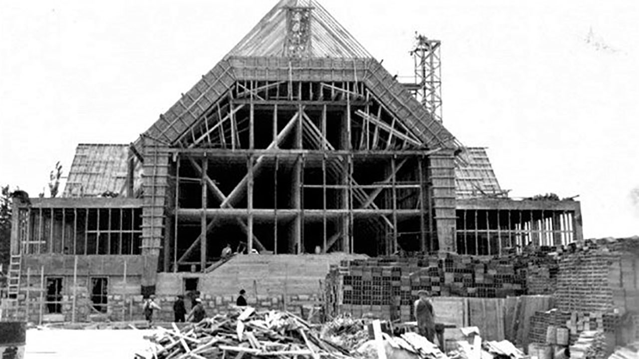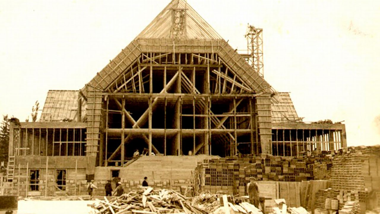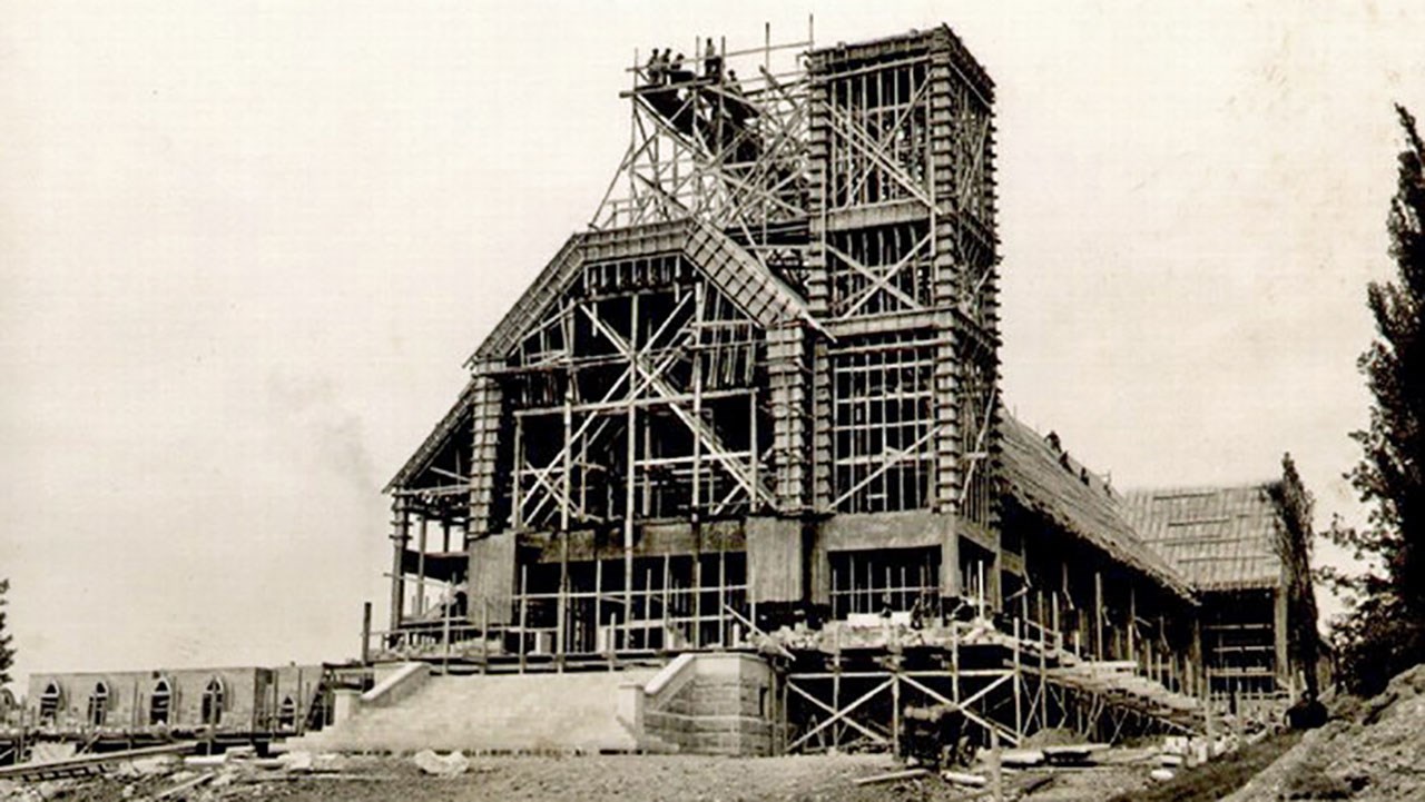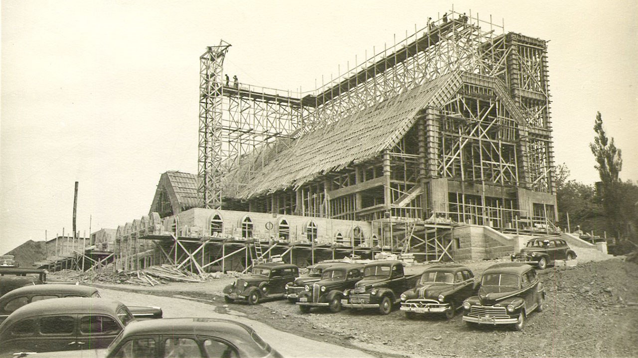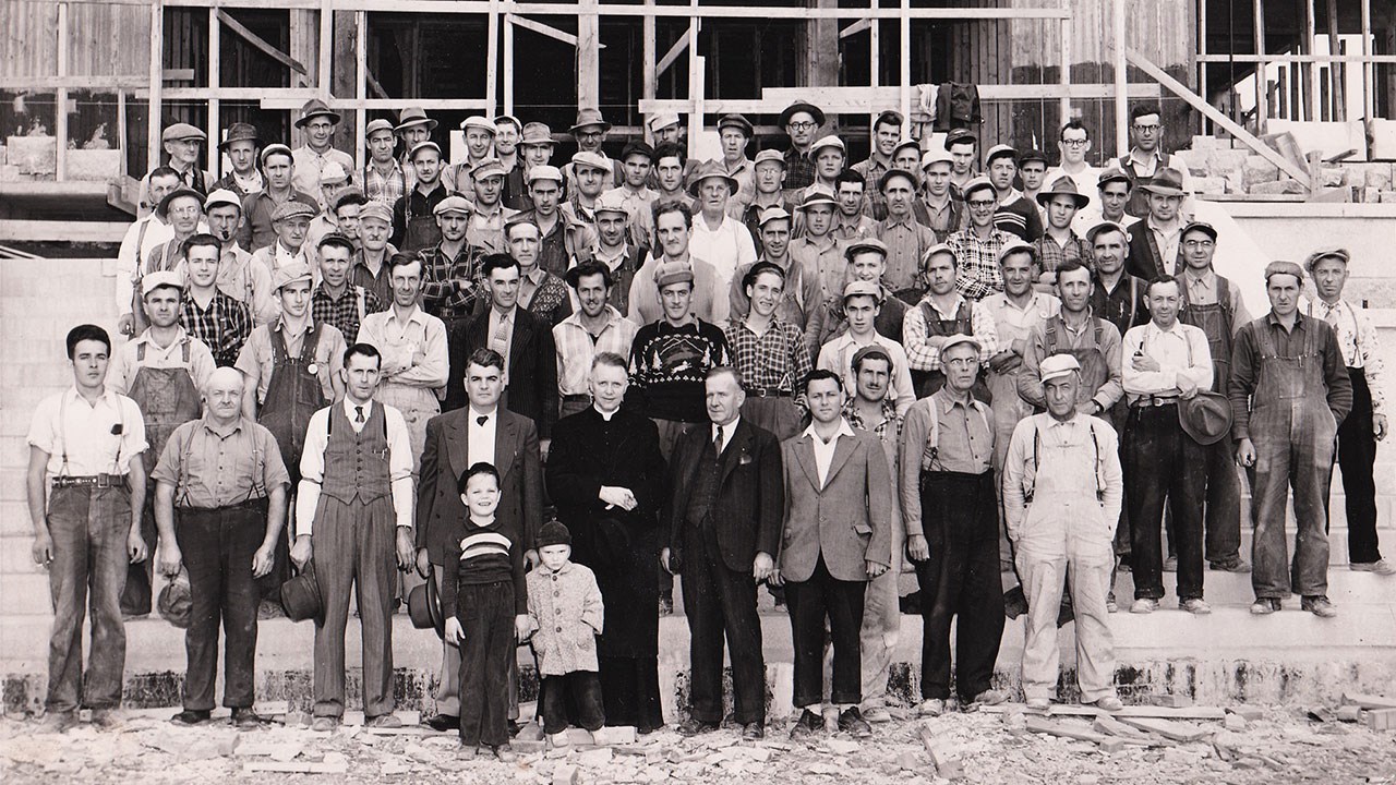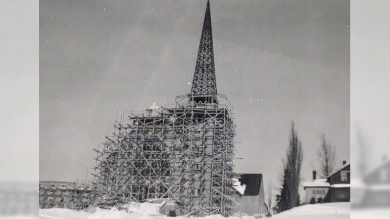 Photos du fonds Claude Loubier, sauf la 1re qui est de Jean-Frédéric Chrétien, la dernière du fonds Yvon Thibodeau et celles de l’édifice en construction, du fonds Jean Lacroix. Texte et recherches de Pierre Morin.