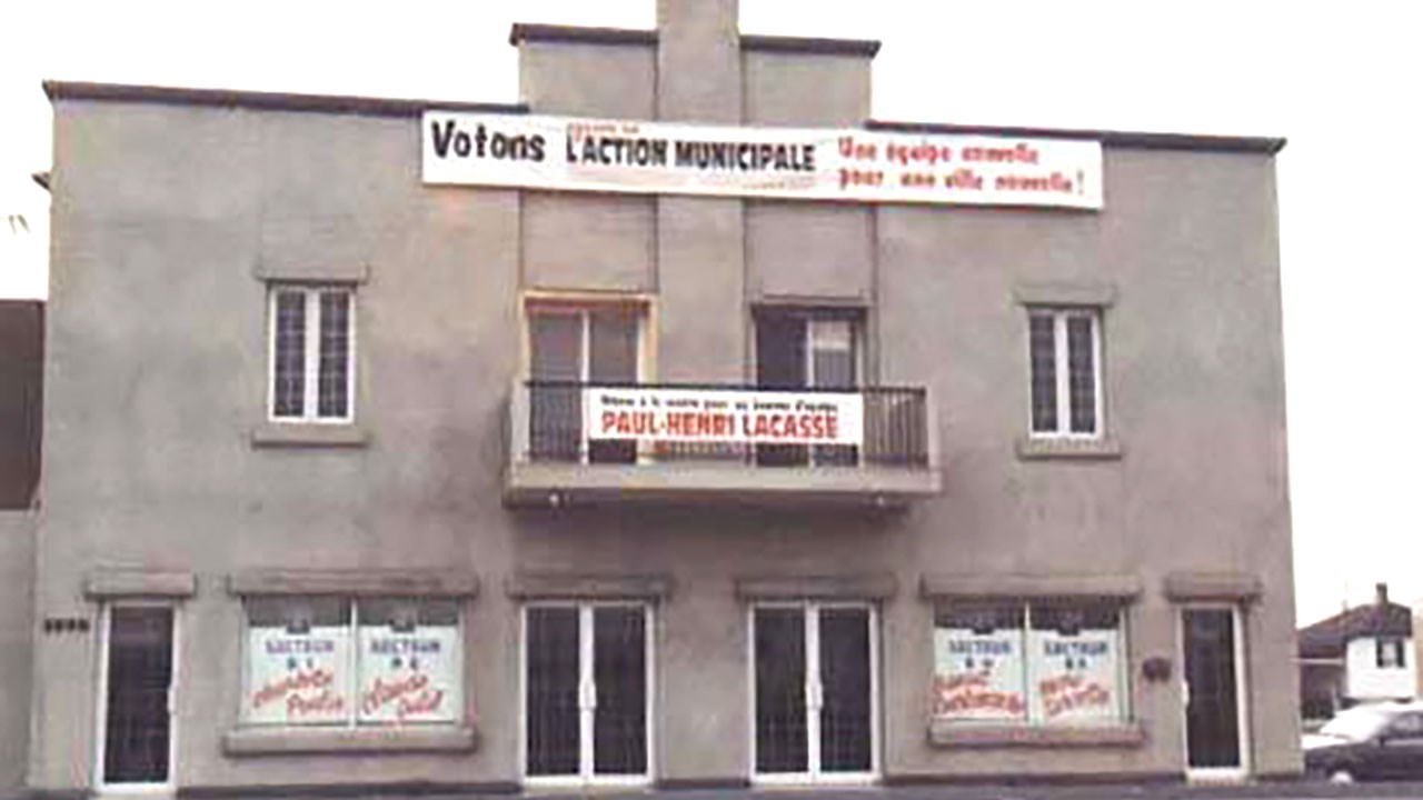 En fait, on n'y présentait pas que des films, mais une foule d'activités éducatives, culturelles ou de divertissement. Sur la 5e photo, on peut voir des spectateurs adultes se préparant à entendre un conférencier dans le cadre de l'École des parents, qui fut présentée régulièrement pendant plusieurs années. Dans les années '50, les jeunes remplissaient souvent le Théâtre Royal le samedi pour participer au Carnaval des Jeunes, qui a aussi eu lieu au Théâtre Vimy (photo 6). C'était un genre de concours d'amateurs pour les enfants, avec prix de présence. Aussitôt que les portes ouvraient, tous les jeunes se ruaient et poussaient pour entrer. Pour être admis à cette activité, il fallait apporter dix capsules de bouteilles de liqueurs St-Georges. Ce fut extrêmement populaire. On y a aussi offert des concerts, dont ceux des Jeunesses Musicales et plusieurs aussi (souvent à guichet fermé) de l'Écho Beauceron. Les Rossignols (de Roger Rancourt) y ont chanté à l'occasion de l'ouverture des premiers jeux du Québec en 1974. Pendant longtemps, c'est M. Thomas Veilleux, frère du propriétaire, qui fut gérant de cet établissement. M. Victor Bolduc et Mme Lucienne Bérubé (Mme Benoit Rodrigue) y ont aussi longtemps travaillé comme préposés à l'admission et au comptoir de bouffe. Jacques Létourneau y fut aussi portier et placier. On a cessé d'y présenter des films dans les années '80 et on a transformé l'édifice en bloc à appartements avec un local commercial à l'avant. En 1990, le candidat à la mairie P.H. Lacasse y a eu son local électoral (photo 7). Par la suite, le commerce Boom Vidéo s'y est établi, comme on le constate à la huitième photo. Et aujourd'hui, c'est le magasin Ambiance Sports. Wow, des milliers de géorgiens ont connu et fréquenté cet établissement qui fait encore partie de notre décor urbain. Sa vocation a changé, mais plusieurs se souviennent sûrement de cette salle de cinéma et spectacles.