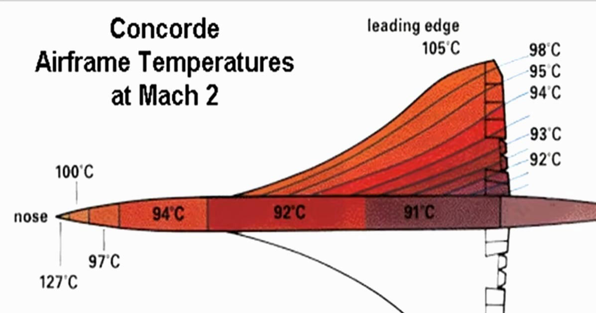 Le problème de la chaleur générée par la friction de l’air à cette vitesse, malgré le fait que Concorde volerait à une altitude de 60,000 pieds, comparé aux avions commerciaux réguliers qui volent entre 35,000 et 40,000 pieds. À cette altitude (à partir de 30,000 pieds et plus) la température est souvent dans les -45C et à 60,000 pieds, près de – 55C. Malgré cela il fallait 3 systèmes d’air climatisé pour que la chaleur extrême n’envahisse pas l’avion. Si 2 de ces 3 airs climatisés venaient qu’à flancher, les pilotes n’avaient d’autres choix de que passer à une vitesse subsonique.