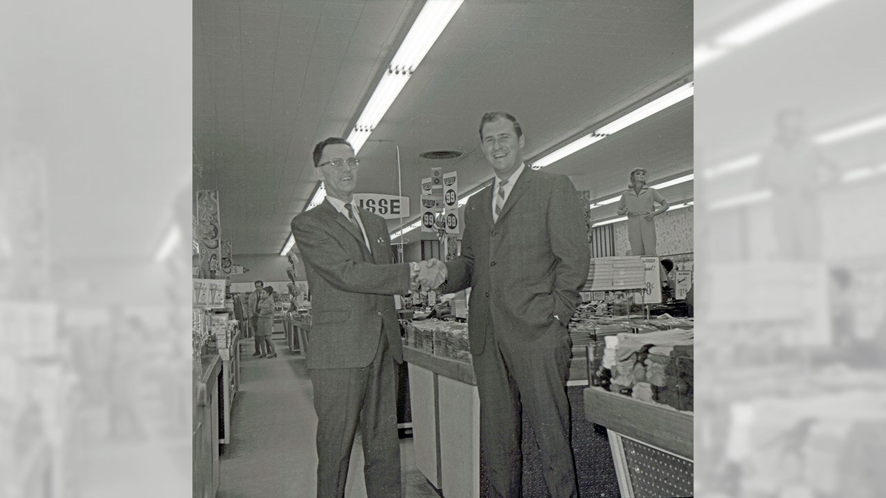 C’était toute une innovation, un magasin avec un escalier roulant, wow! Juste l’escalier à lui seul constituait une attraction sensationnelle à l’époque, tous ceux qui sont allés y magasiner s’en souviennent. Il y a même eu des jeunes qui le descendaient à contresens. Ce fut l’un des magasins icônes de la première avenue (photo 1). On a dû reculer la maison de Mathias Dutil (grand-père de Marcel et Anne Dutil) en prévision de l’arrivée de ce magasin qui a ouvert vers 1960, voyez la photo 2 nous montrant les lieux vers 1958, avant qu’on ne soulève et recule cette maison pour faire place au magasin. Les dirigeants de ce commerce savaient comment attirer la clientèle: on acceptait de changer les chèques d’Aide sociale. Même qu’on donnait une prime à ceux et celles qui y changeaient leur chèque d’allocation familiale. À chaque fois qu’arrivait la fin du mois, le gérant du magasin devait se préparer à l’avance et se rendre à la banque pour obtenir suffisamment d’argent liquide pour être en mesure de répondre à la demande et encaisser tous ces chèques. Pendant la période des Fêtes, il y avait un Père Noël qui trônait au 2e étage dans le département des jouets. Et à Halloween, une sorcière donnait des bonbons. Malgré son air sérieux, le gérant Alphonse Lafleur était très gentil, c’est lui qu’on voit à gauche sur la 3e photo, en compagnie de l’animateur de radio Gilles Bernier, qui faisait des reportages publicitaires à CKRB en direct du magasin. On se souvient encore de quelques employés: Jeanne D’Arc Allaire, Fernande Lapierre, Antoinette Deblois et René Labbé... Vous en connaissez d’autres?
