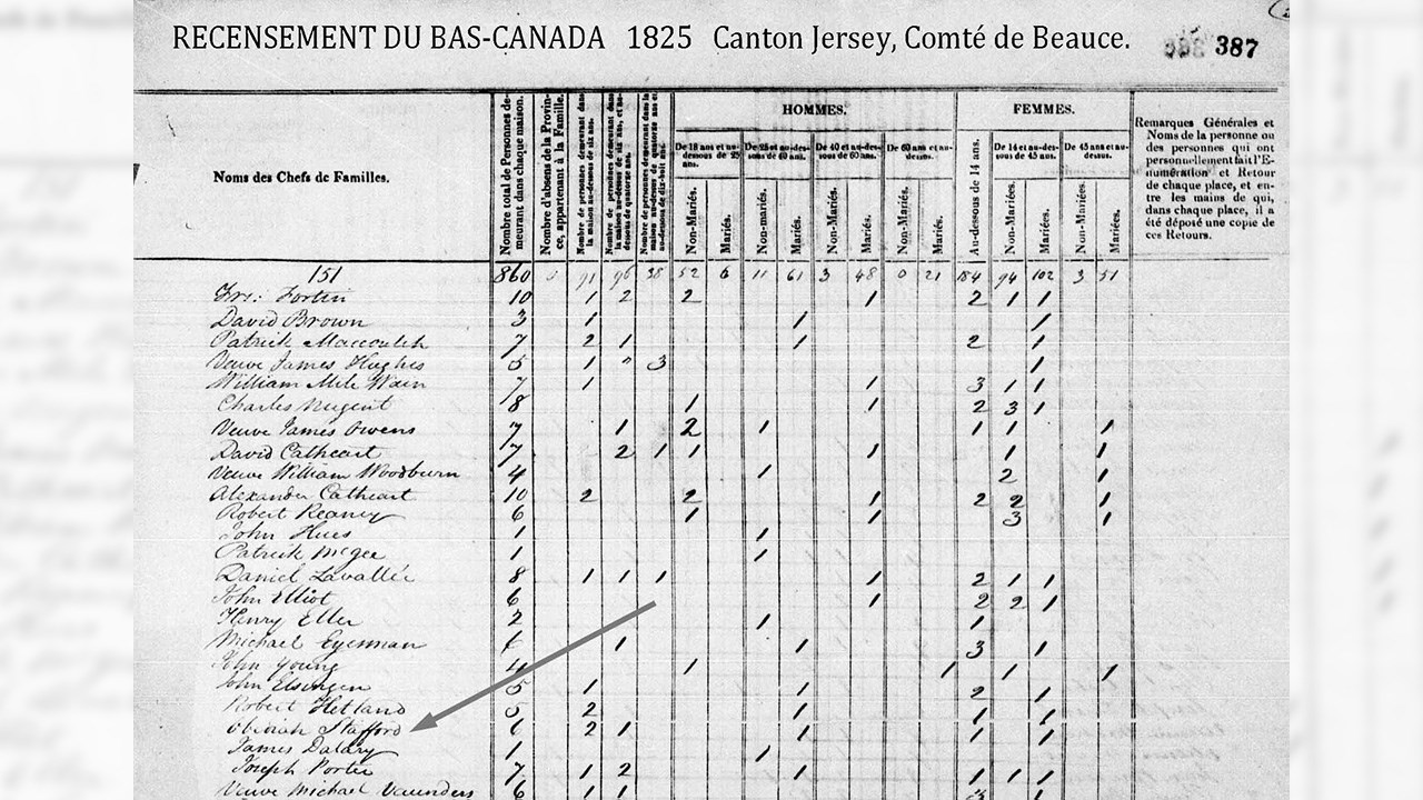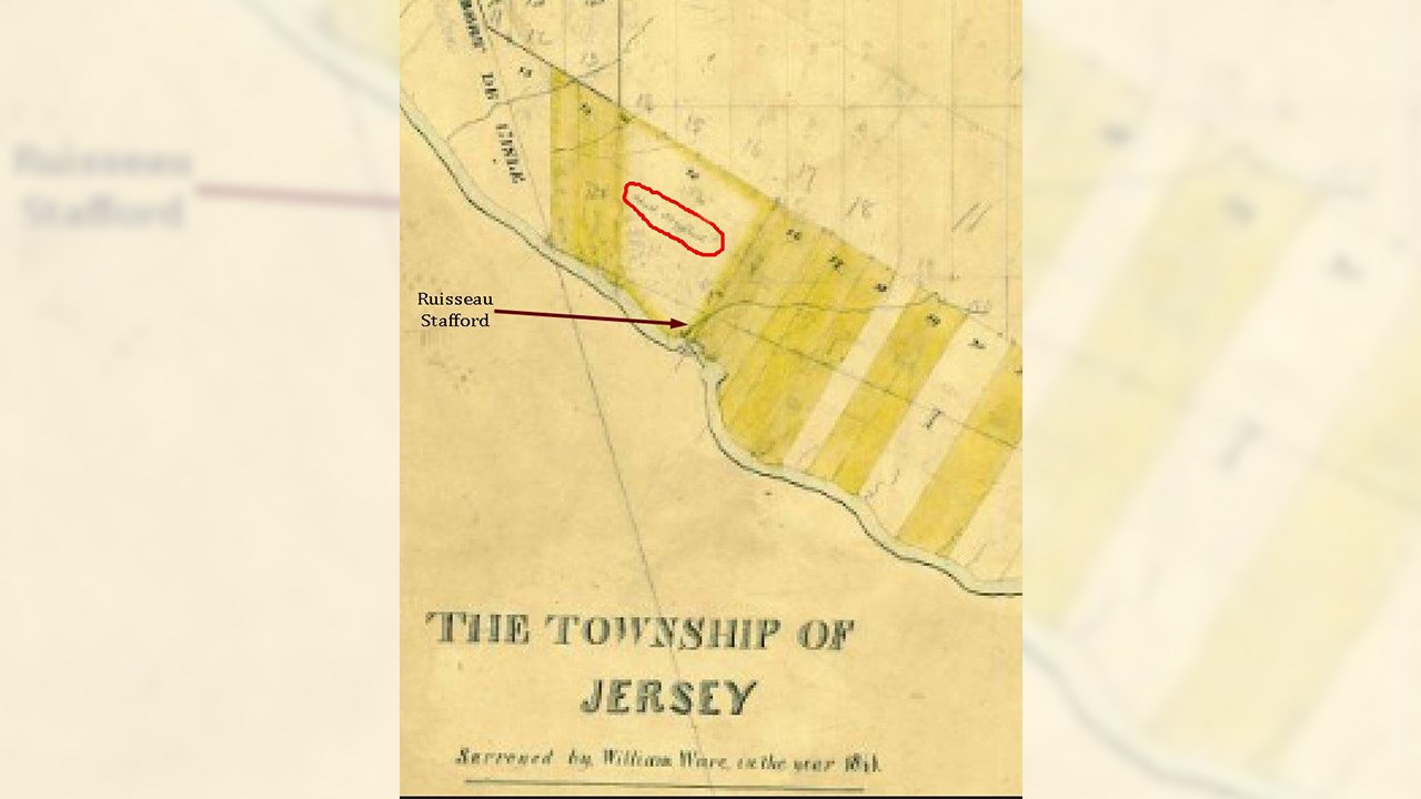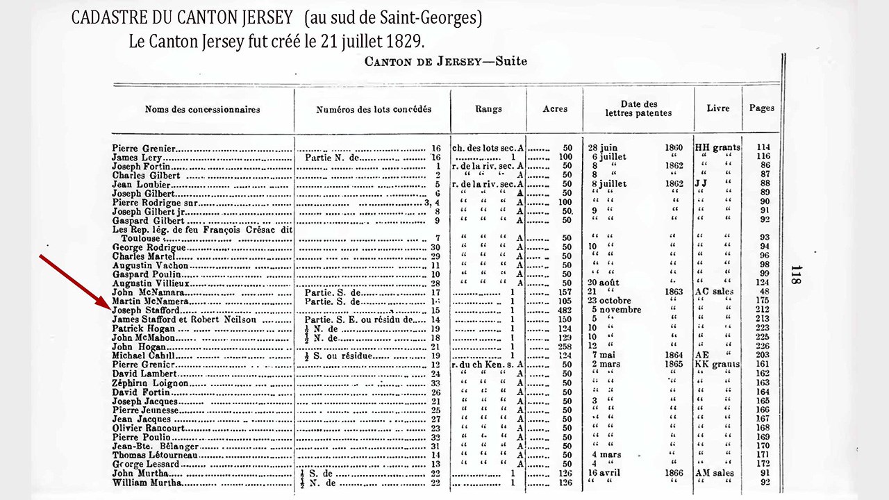 Les photos 1 (1904) et 2 (août 1900) nous offrent une vue spectaculaire des «chutes de la Stafford», qui sont la plus importante dénivellation de la Chaudière entre Lac-Mégantic et Charny. Elles constituent une sorte de frontière naturelle entre Saint-Martin et Saint-Georges. On entend parfois parler de «La Stafford», mais en réalité, ce n’est pas une rivière mais un ruisseau, puisqu’il ne s’écoule que sur quelques km. Il prend sa source dans plusieurs rues et fossés dans le secteur de Saint-René. Sa renommée ne vient pas de son débit, qui est très modeste, mais plutôt de l’endroit où il se jette dans la rivière Chaudière. Anciennement, cet endroit était connu sous le nom de «Grand Sault». Ce mot «sault», qui  était autrefois utilisé, est tombé en désuétude il y a longtemps et a été remplacé par le terme synonyme «chute». C’est le général Benedict Arnold qui a rendu cet endroit célèbre (photo 3). Lorsque Arnold passa par la rivière Chaudière pour aller attaquer les Anglais à Québec en novembre 1775, il se fiait sur une carte de la région préparée par l’ingénieur John Montrésor. Hélas, cette carte était erronée et ne situait pas bien les rapides du grand Sault de la rivière Chaudière, au confluent du ruisseau Stafford. Prises par surprise, les troupes d’Arnold y ont subi de lourdes pertes. Plusieurs s’y noyèrent, car le courant emporta de nombreuses embarcations qui allèrent se fracasser au pied des chutes. Aujourd’hui, quand on parle de cet événement on y réfère parfois en mentionnant la Stafford, mais en réalité, ce sont les chutes de la Chaudière, à l’embouchure du ruisseau Stafford. D’ailleurs, à l’époque, en 1775, ce cours d’eau n’avait pas de nom. Pourquoi l’appelle-t-on  «la Stafford»? Tout simplement parce que dans les années 1800, trois générations de Stafford furent propriétaires du lot où se trouve une partie importante du ruisseau en question. D’abord le père Obadiah dans les années 1820-50, puis son fils Joseph Stafford dans les années 1860-80 et le petit-fils Josiah jusqu’au début des années 1900. Voyez le recensement de 1825 où le nom du père est inscrit (document 5) de même que sur les plans des lieux en 1834 (docu 6) et en 1841 (docu 7). Au tour du fils Joseph d’être mentionné au cadastre à titre de propriétaire depuis le 5 novembre 1863 du lot 15 de 482 acres où se trouve le fameux ruisseau (docu 8). Et un plan de 1899 où le nom «ruisseau Stafford» est même écrit (docu 9). Ces importants documents démontrent de façon incontestable l’origine de cette appellation en référence au nom des propriétaires des lieux. Le professeur Roger Gagné, historien réputé, a écrit ce qui suit: «Arnold ira s’échouer contre d’autres rapides (mal positionnés sur la carte de Montrésor) ... situés à l’embouchure du ruisseau Stafford où il fait naufrage et perd ses effets personnels, d’où la «Légende du trésor d’Arnold». Aurait-il perdu, dans ces rapides des chutes «Le Grand Sault» le coffre de pièces d’or et d’argent devant servir à payer ses soldats? La question reste encore sans réponse aujourd’hui». C’est finalement un lieu historique important, situé sur la «Arnold Trail», soit sur le trajet adopté par Arnold il y a près de 250 ans. On y passe à chaque fois qu’on circule entre Saint-Georges et Saint-Martin, puisqu’on enjambe alors le pont Stafford près des chutes (photo 4). Remarquez-le la prochaine fois que vous y passez, c’est un rare site chez nous d’un événement important de l’histoire américaine.