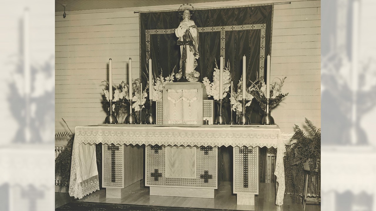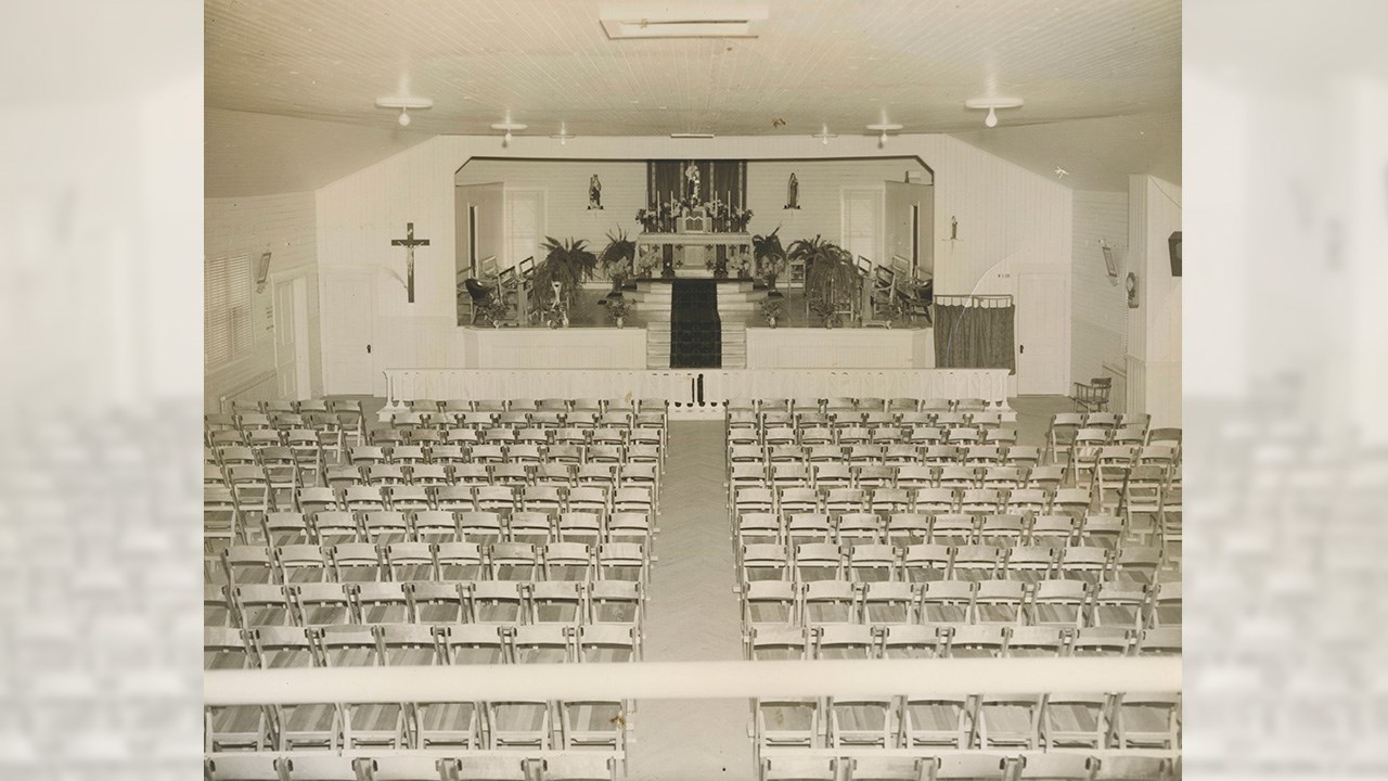 La première photo nous montre un genre de petit clocher sur le faîte du toit d’un immeuble autrefois bien connu de la 1re avenue: l’édifice Lacroix (photo 2). Normalement, un clocher abrite des cloches. Mais ces clochers miniatures qu’on voit parfois sur des toitures, et qui ne contiennent pas de cloches, sont des «clochetons». Cette petite structure fut construite et installée à cet endroit en 1950 pour la bonne raison que cet immeuble a servi de chapelle temporaire lorsqu’on a fondé la paroisse de l’Assomption à Saint-Georges Est. Nouvelle paroisse signifiait nouvelle église. Les paroissiens ne voulaient pas attendre que la nouvelle église soit prête en 1952, donc on a décidé de transformer le deuxième étage de l’édifice Lacroix en chapelle temporaire dès 1950. Tout ce branle-bas était mené par M. Édouard Lacroix, qui ne faisait pas les choses à moitié. Voyez aux photos 3 et 4 l’intérieur de la chapelle temporaire qu’il y fit aménager et l’autel. Non seulement les messes seraient célébrées dans son édifice, mais il fallait aussi que le tout soit fait dans les règles: clocheton et appel des cloches avant les messes. On ne pouvait tout de même pas ériger un vrai clocher avec des imposantes cloches, car c’était temporaire. On y a donc installé le clocheton montré à la 1re photo, mais on a aussi entendu le son des cloches à tous les dimanches. En effet, M. Lacroix s’est procuré un disque des cloches de la cathédrale de Paris (d’autres prétendent que c’étaient les cloches de l’église Saint-Pierre de Rome) et les faisait entendre à fort volume au haut-parleur au centre-ville lors des cérémonies religieuses, jusqu’à ce que la construction de l’église soit terminée, le 15 juin 1952. Dans son livre sur l’histoire de l’église l’Assomption (SUR LES COTEAUX DE L’ARDOISE, publié en 1999), l’historien Garant raconte qu’à un certain moment, «des plaisantins auraient subtilisé le disque «officiel» du bedeau... pour «Prendre un verre de bière mon minou» diffusé sur la chapelle de la 1re Avenue, s’esclaffait Roger Labbé, décédé en 1999!» On ne saura jamais si cette histoire est vraie.