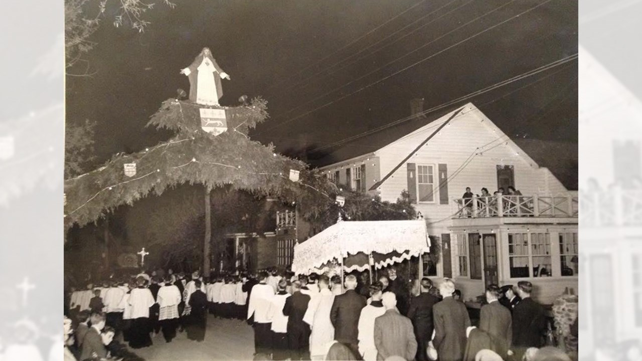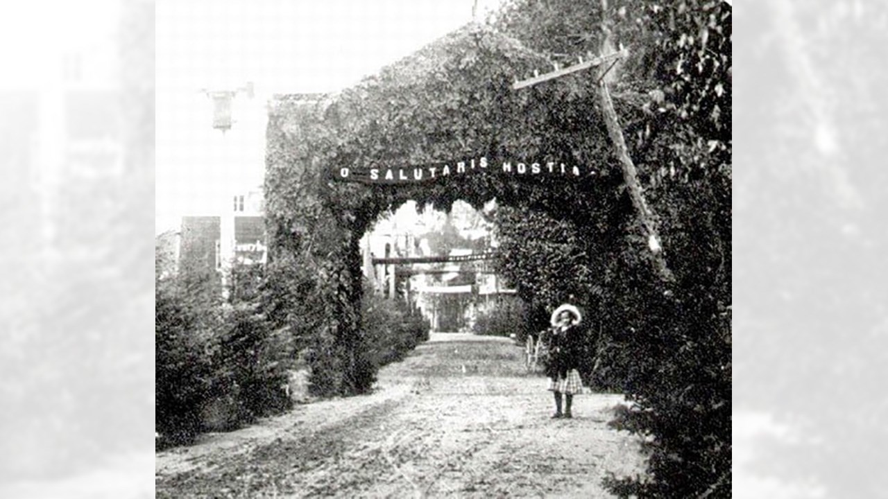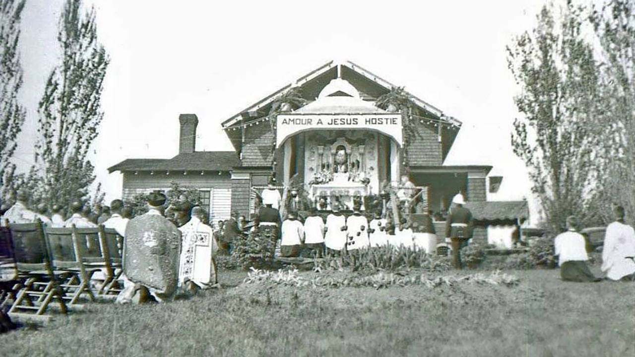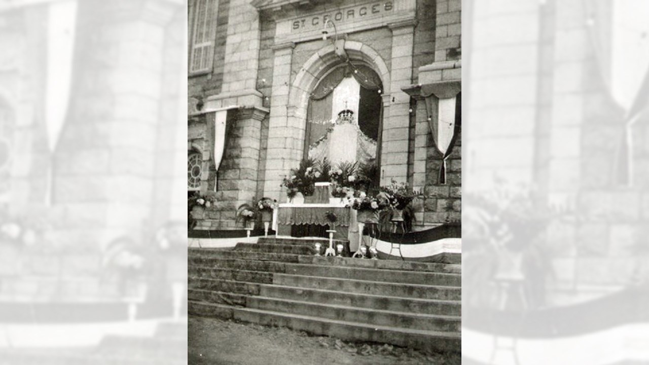 Il y a 100 ans, la ferveur religieuse était à son comble chez nous. La quasi-totalité des gens allaient à la messe à chaque dimanche et se conformaient strictement aux préceptes édictés par les autorités catholiques, parfois aussi astreignants que de jeûner au moins 12 heures avant de pouvoir communier ou de se priver partiellement de nourriture pendant le carême. Le summum était les nombreuses processions nous faisant déambuler en parade sur les principaux artères un peu partout en ville: la Fête-Dieu, la Fête du Sacré-Coeur, Fête de l'Assomption, la Fête aux flambeaux et bien d'autres, surtout pendant la période estivale. Généralement, pendant la procession, le prêtre portait l'Eucharistie dans un ostensoir et défilait abrité sous un dai porté par quatre participants. On possède plusieurs photos de ces longues processions se déplaçant en rangs serrés en différents endroits au centre-ville, comme sur la 1re avenue en 1919 (photo 1) et sur la 2e avenue en 1956 (photo 2). Parfois, les organisateurs érigeaient d'énormes arches faites de branches de sapin au-dessus de la rue où passait la parade. Une très ancienne, vers 1906, sur la 1re avenue au centre-ville (photo 3). On en voit une en face du magasin de l'horloger Alfred Perron (aujourd'hui Jouets Place Bureau) pas loin de la 123e rue vers 1907 (photo 4). Une autre vers 1938 à peu près en face de la Banque Royale (photo 5). Même une dans l'ouest près de la 24e rue vers 1960, maison Yvon Thibaudeau (photo 6). Le moment le plus important était l'arrêt au reposoir, endroit où on avait érigé un autel temporaire, là où le prêtre procédait à une cérémonie religieuse et donnait sa bénédiction. Une photo extraordinaire montrant le reposoir des frères Thibaudeau à leur magasin sur la 1re avenue vers 1922 (photo 7). Pendant plusieurs décennies, les propriétaires géorgiens rivalisaient d'ingéniosité pour ériger le plus extravagant reposoir sur le seuil de leur résidence. Voyez les gens agenouillés dans l'escalier menant au reposoir installé devant l'ancienne maison de Gédéon Gagné sur la 2e avenue (photo 8). On changeait de place à chaque année, et c'était à qui aurait le plus beau jamais réalisé. Celui chez le maire Rémi Bolduc sur la 2e avenue coin 123e rue en 1927 (photo 9). C'était considéré comme un honneur que d'être choisi, comme le démontrent toutes ces photos anciennes. En 1942, sur le parvis de l'église dans l'Ouest (photo 10). La dernière procession à Saint-Georges, à ma connaissance, fut la Fête-Dieu du 25 mai 2008, qu'on voit parader dans la 18e rue à la photo 11. Incroyable: j'ai trouvé une photo ancienne (vers 1936-37) où on aperçoit une imposante structure faite de gros madriers partant de l'ancien pont de fer, avec drapeaux et décorations, où l'on voit des citoyens endimanchés circulant sur cette construction inusitée (photo 12). Il n'y a qu'une manifestation religieuse pour justifier des travaux aussi extravagants. Il semble qu'à cette occasion, on avait même décoré de guirlandes les poutres et les murets de l'entrée du pont, dans l'est (photo 13). La plupart ont aussi connu les processions au flambeau, qui avaient lieu le soir, pour mieux contempler l'éclairage spectaculaire des centaines de participants (photo 14). Puisque les gens marchaient en groupe, la flamme aurait vacillé et se serait éteinte si on ne l'avait pas protégée au moyen du flambeau. On fournissait des portes-cierges constitués d'une chandelle insérée dans un trou pratiqué dans le fond du protecteur cartonné. Mais il arrivait que le feu prenne dans le flambeau... Quels souvenirs.
