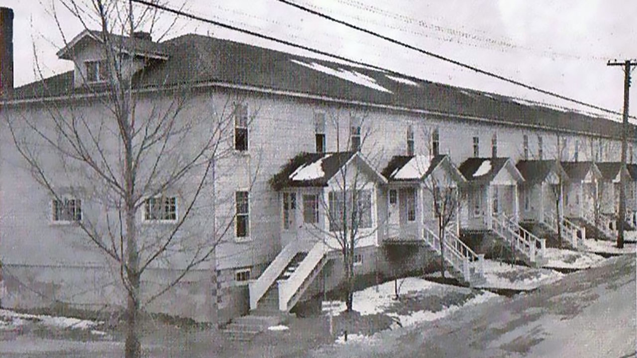 Tous les gens de l'ouest connaissent «les dix logements» (que certains ont aussi appelé «les dix loyers») qui font partie du paysage de St-Georges depuis plus de 75 ans (photo 1). On voit mieux où ils étaient situés à une photo aérienne de 1961 (photo 2). Ils furent en effet construits dans la rue Saint-Guillaume (maintenant 25e rue) en 1946 par M. Ludger Dionne, soit environ cinq ans après l'ouverture de sa manufacture Dionne Spinning Mills du boulevard Dionne. À l'époque, le loi 101 n'existait pas, et les raisons sociales des entreprises étaient presque toutes en anglais. Il louait en priorité à des travailleurs de son usine. Ces logements ont été bien entretenus et rénovés à plusieurs reprises, comme on le constate à la 3e photo. Ils existent encore aujourd'hui, même qu'ils sont en très bon état. On a cependant modifié la configuration des lieux pour porter à 21 le nombre de logements.
