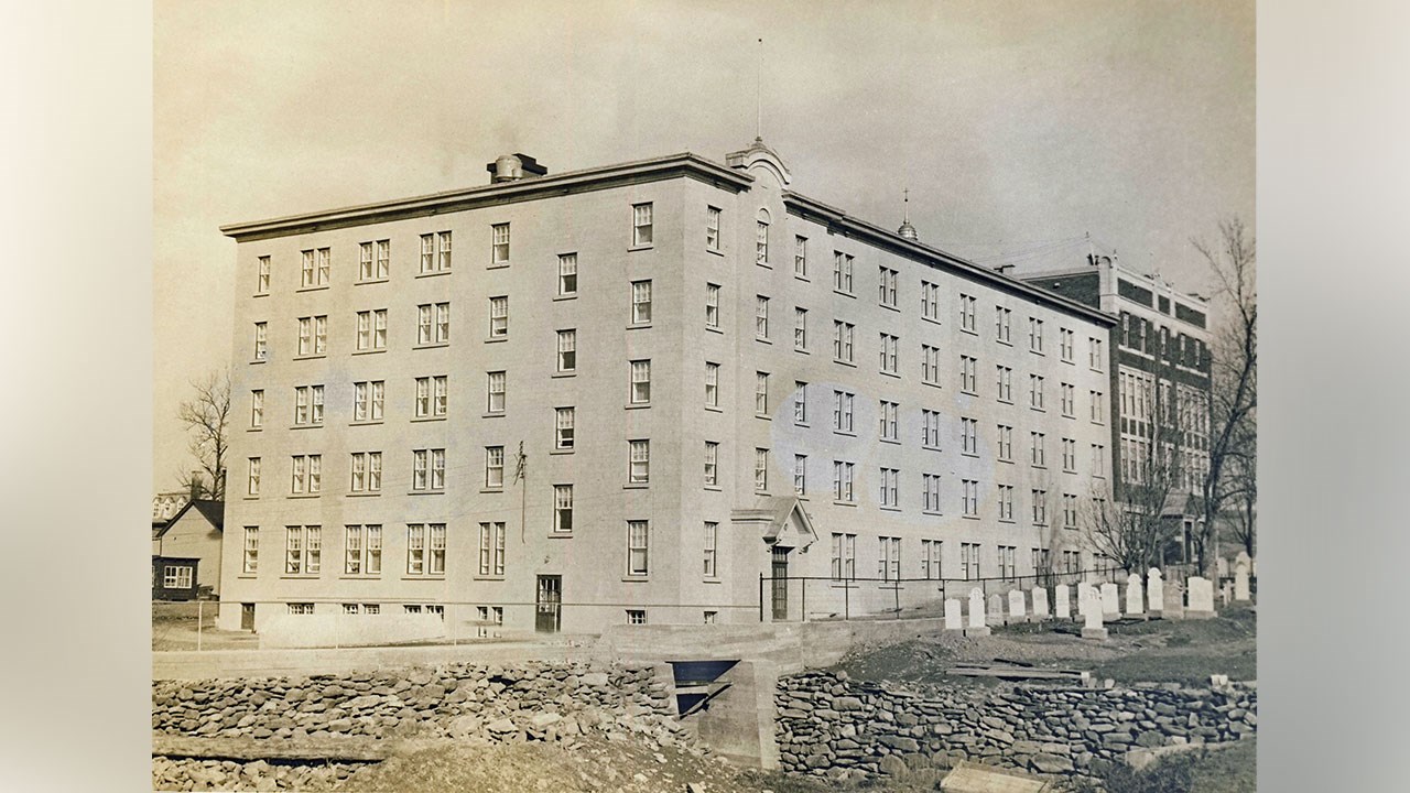 Ce n'est pas le seul édifice que M. Dionne fit construire pour ses employé(e)s. 100 polonaises, sauvées des camps de réfugiés de l'Europe de l'Est, furent recrutées par M. Dionne pour venir travailler à son usine. En prévision de leur venue, M. Dionne fit aussi ériger une énorme bâtisse que nous avons tous connue: le Foyer du Bon-Pasteur, adjacent au couvent qui portait le même nom (photo 4). Elles arrivèrent à Saint-Georges le 4 juin 1947, tout juste comme on terminait le parachèvement de leur résidence. C'est à cet endroit qu'elles furent logées, sous la garde et la supervision des Soeurs du Bon-Pasteur. Après avoir vécu des moments de réclusion dans les camps de réfugiés, ces jeunes filles avaient soif de liberté. En venant s'établir ici, elles rêvaient de rencontrer le prince charmant. On leur imposa hélas des conditions de vie quasi-monastiques, comportant des restrictions sociales très rigoureuses. Les principes religieux très sévères à l'époque les ont rebutées, elles ont choisi d'aller vivre ailleurs et dès le 31 janvier 1949, il n'en restait plus que 8. Ce bâtiment coûta à l'époque 250,000$, soit le même prix que la Ville a payé il y a quelques années pour se l'approprier. Il fut démoli en mai 2015.