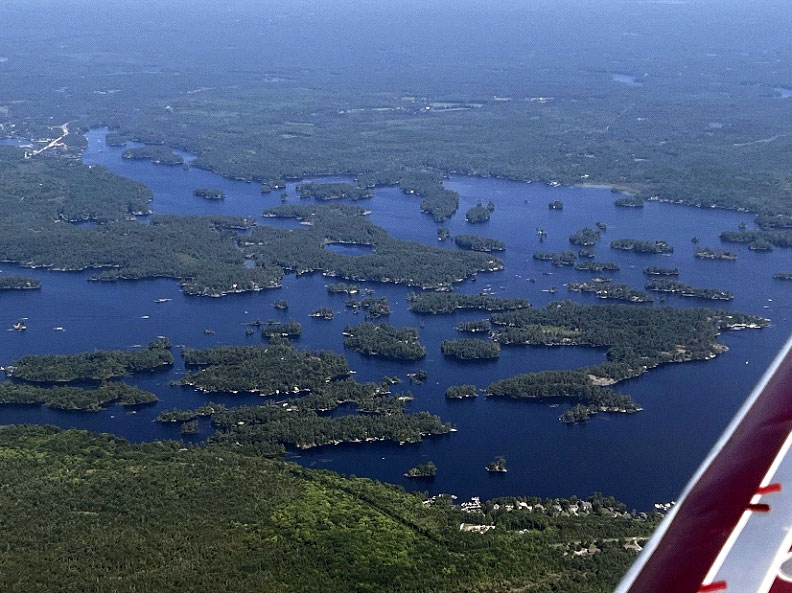 Comme prévu, nous décollons donc vers 8:30 le vendredi matin de Saint-Georges pour un escale à Lindsay (Ontario), soit environ 357 miles nautiques ou 660 kilomètres pour une durée de vol d’environ deux heures trente à 8 500 pieds. Après le décollage, nous montons immédiatement à 4 500 pieds pour contacter le centre de contrôle de Montréal qui nous confirme qu’Ils nous ont bien en vue sur leur radar