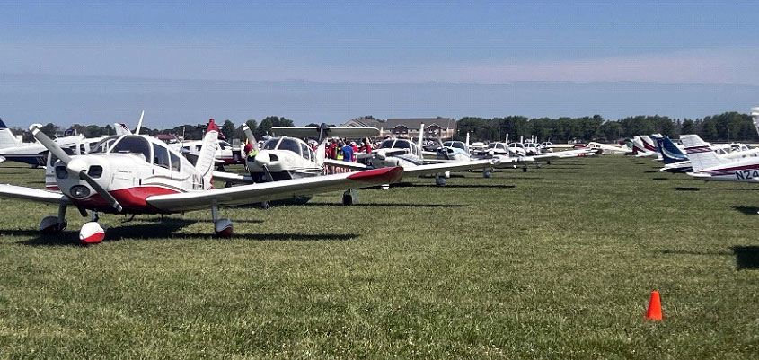 Une des choses la plus intéressante à voir est l’arrivée des autres avions. Il y a ce que l’on appelle des MASS ARRIVAL. Ce sont des gens qui possèdent des types d’avions semblables qui se réunissent à un aéroport près de Oshkosh et qui arrivent en groupe. J’ai eu l’occasion de prendre quelques vidéos de l’arrivée des Beechcraft.
