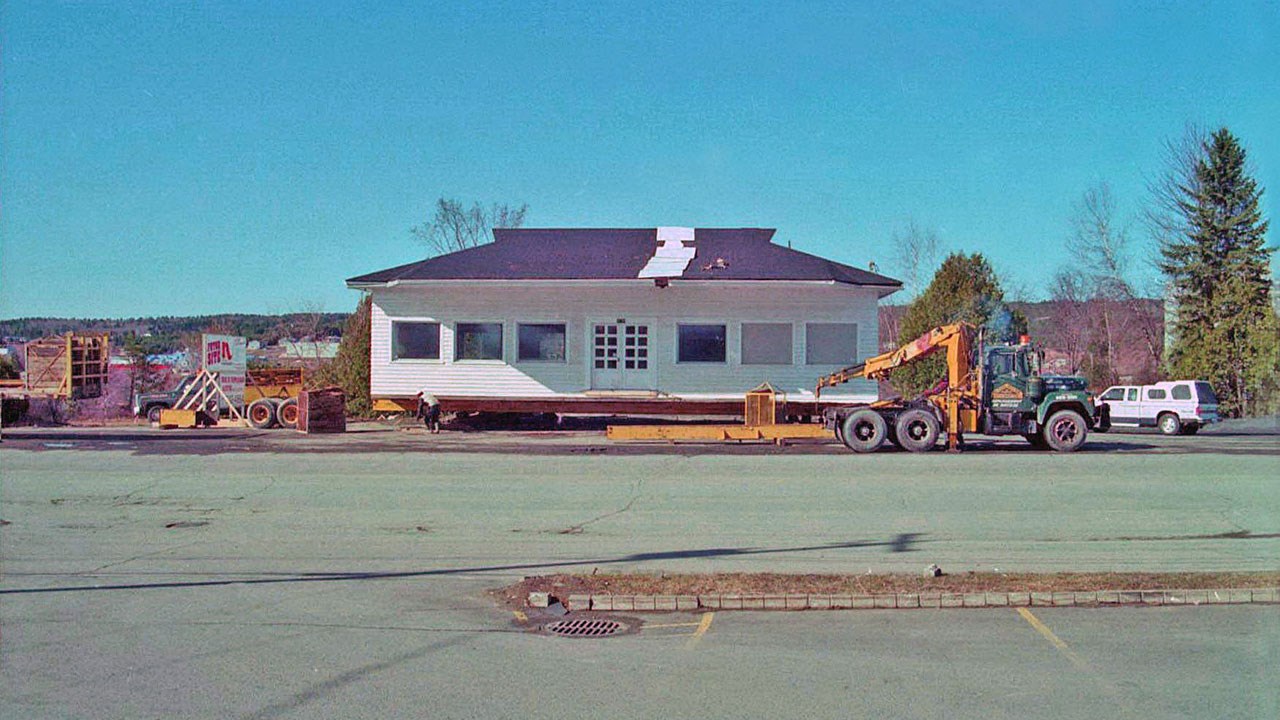 Lorsque la chaine Normandin acheta le terrain où devait être construit son nouveau commerce, il fallait enlever l'immeuble ayant logé Aux Souvenirs. Heureusement, on n'eut pas à le démolir puisqu'on trouva un acheteur qui accepta de le transporter ailleurs. C'est la firme de M. Alcide Doyon Transport qui procéda au déménagement dans la journée du mardi 7 juin 1994 (photo 4). La bâtisse fut déménagée au 3503 du rang Saint-Charles à Notre-Dame-des-Pins dans un superbe environnement champêtre. Voici une photo (de 2017) de cet ancien restaurant qui fut transformé en maison d'habitation (photo 5). L'acheteur initial était lui-même un sculpteur ébéniste et il modifia complètement l'aspect de l'immeuble en changeant la disposition des portes et fenêtres en plus d'aménager une très belle galerie. Connaissant maintenant l'histoire de cet ancien restaurant, son image vous reviendra peut-être en mémoire la prochaine fois que vous vous rendrez au restaurant Normandin.