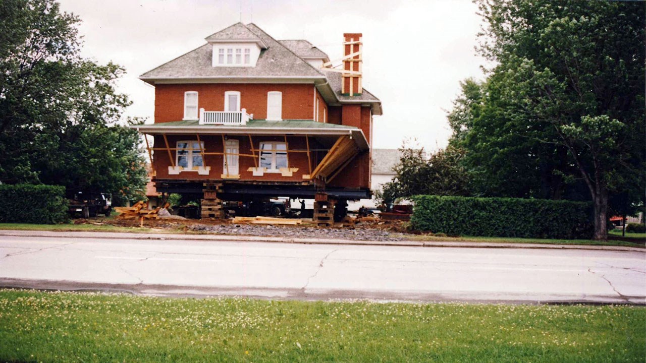 M. Dutil a trouvé le site idéal pour la réinstaller, plus haut sur les coteaux, pas très loin du CÉGEP. Cette imposante bâtisse fut donc déménagée pendant la nuit du 30 juin au 1er juillet 1994, puisqu'il fallait faire vite vu que ce cortège devait circuler sur le boulevard Lacroix, plus important artère de la ville. Il prenait presque toute la largeur du chemin pour se rendre à destination. Voyez trois photos (4, 5 et 6) de cet événement spectaculaire. Le déménagement s'est déroulé sans encombre et la belle résidence de M. Lacroix trône maintenant sur la 8e avenue dans toute sa splendeur, admirablement conservée (photos 7). Une autre photo, de septembre 2012 (photo 8 ). Elle est habitée par la quatrième génération de cette dynastie, soit la famille de Marc Dutil, dirigeant de l'entreprise Canam. Un bel exemple de conservation du patrimoine. Ce superbe immeuble perpétue la mémoire de ce grand beauceron que fut Édouard Lacroix.