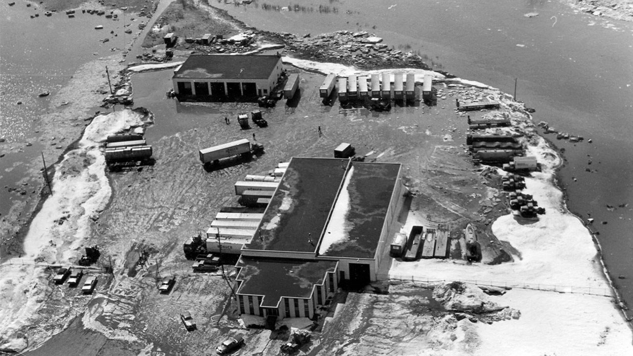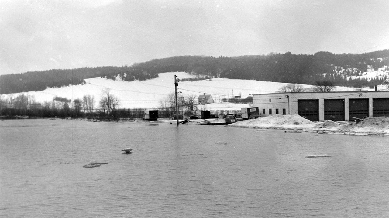 Toutefois, le site qu'ils ont occupé à cet endroit était dans un secteur où la dénivellation de la rivière est faible, ce qui avait l'inconvénient de présenter des risques d'inondation lors des débâcles printanières. À chaque printemps, ils étaient encerclés par la hausse des eaux de la rivière, comme le démontrent les photos 6 et 7.