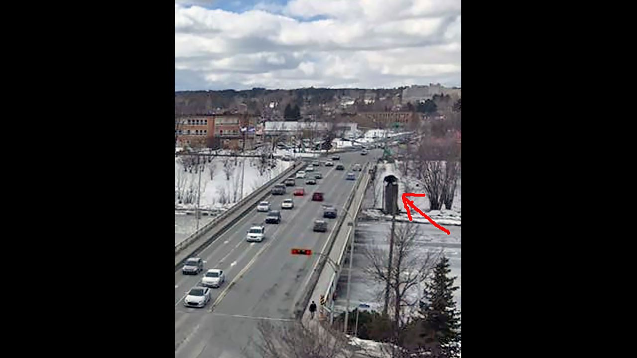 Avant son enfouissement, on l'apercevait un peu partout en ville, particulièrement dans le secteur de l'Église, où il coulait entre le cimetière et le CHLD près de l'ancien Foyer du Bon-Pasteur, comme on le constate sur la 6e photo. Et il allait se jeter dans la rivière près de la jonction de la 1re avenue et de l'avenue de la Chaudière, non loin du magasin Veilleux Décor. On le voit bien sur la 7e photo prise lors d'un accident survenu en février 1960 juste à côté d'un pont le surplombant, précisément à cet endroit.