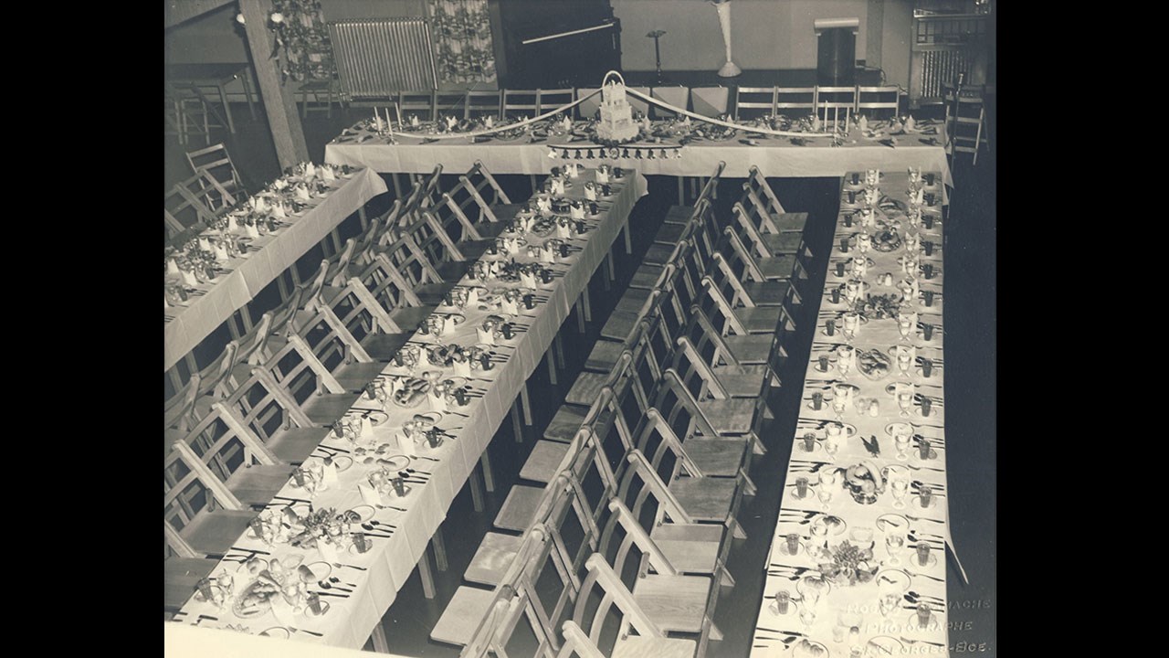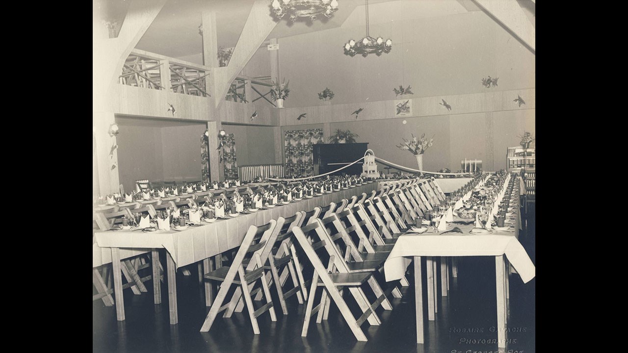Cet édifice était à l'origine occupé par la compagnie forestière Brown Corporation. Plus tard, c'est devenu l'Auberge Saint-Georges Inn, alors situé sur la route nationale 23, aujourd'hui 5e avenue (photos 1, 2 et 3). Cet établissement hôtelier a connu ses meilleurs moments dans les années '50, alors qu'il appartenait à M. Léo Grenier. C'était à cette époque un endroit prestigieux et bien tenu, présentant banquets de noce (photo 4 et 5), soirées dansantes (photo 6) et toutes sortes de spectacles, parfois grandioses, comme la troupe de chanteurs et danseurs Los Suspiros De Espana. Aussi des orchestres locaux, dont Gervaise et son trio.