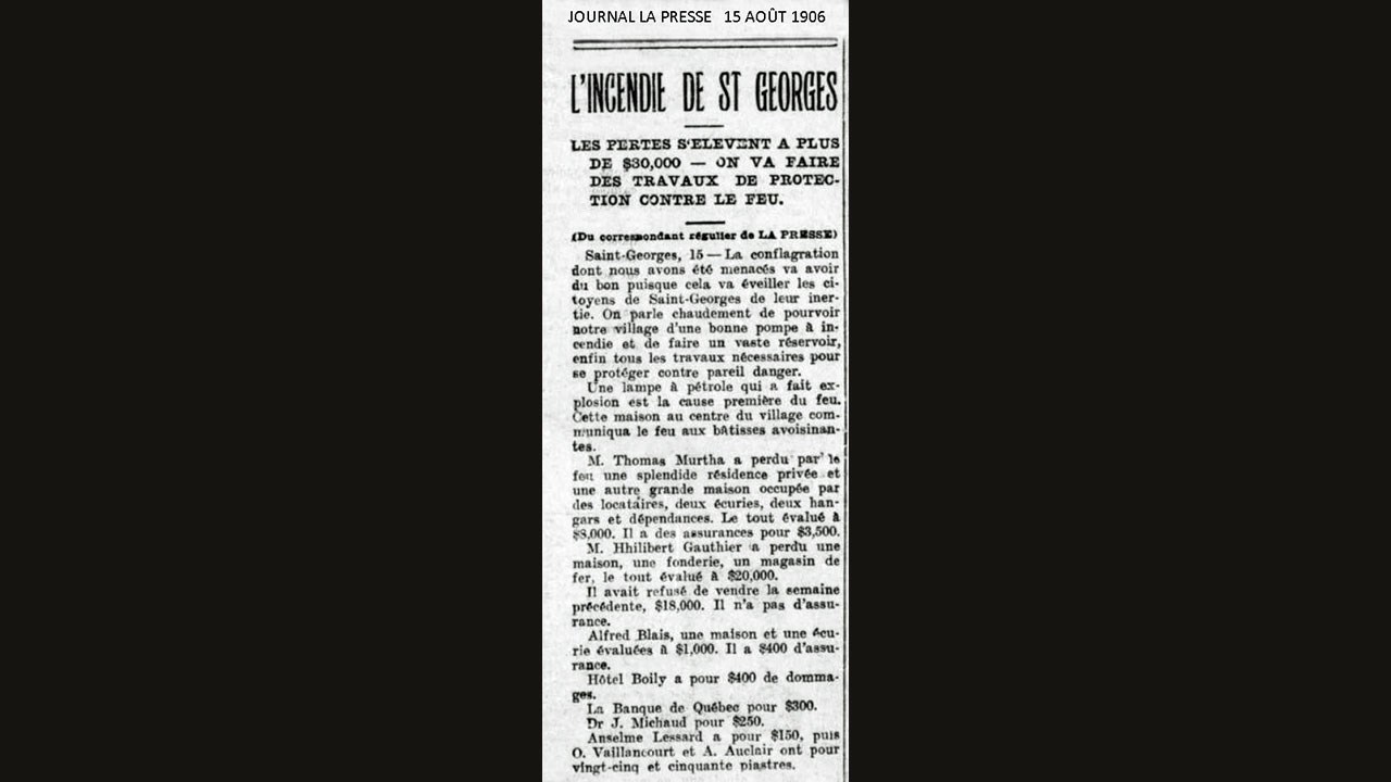 Le Dr Vanderhayden est décédé le 1 novembre 1897 à l'âge de 56 ans. Il fut inhumé au cimetière Saint-Georges, comme le démontre le monument funéraire situé tout près de l'église (photo 4). Sa famille continua d'habiter leur luxueuse maison jusqu'au 25 mars 1904, date à laquelle sa veuve Célina Paquet la vendit à M. Thomas Murtha pour un prix très modique. Murtha n'a pu en profiter bien longtemps puisqu'un incendie majeur survenu dans la nuit du jeudi au vendredi 9 et 10 août 1906 a complètement détruit sa «splendide résidence» selon des articles parus dans les jours suivants dans six journaux différents, dont La Presse du 15 août 1906 (photo 5).