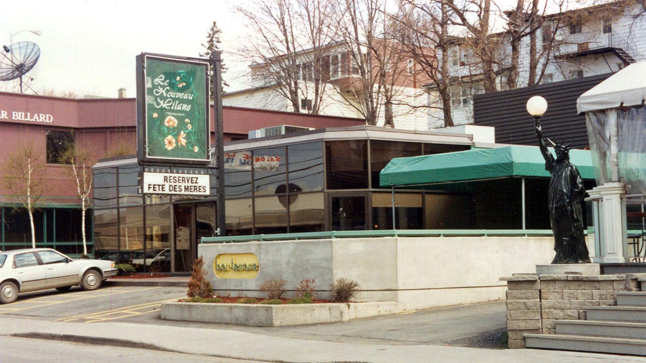 Vers 1980, ils déménagèrent à nouveau et s'installèrent en plein centre-ville, dans un ancien garage qui avait été complètement rénové et transformé en superbe restaurant, situé sur la première avenue, entre l'hôtel Manoir-Chaudière et le Vieux Saint-Georges (Photo 2). Les plans de cet immeuble furent conçus par l'architecte Jean-Gilles Nadeau. En plus de déménager, ils changèrent aussi de nom, ne s'appelant plus le «Milano», mais plutôt le «Nouveau Milano», probablement pour faciliter la vie de leur clientèle, pour faire une réelle différence entre ce site et leurs sites antérieurs. Remarquez, à la photo 3, à l'extrême droite une copie de la statue de la Liberté qui trônait entre le Nouveau Milano et le Vieux Saint-Georges; ce monument va sûrement rappeler de nombreux souvenirs à ceux et celles qui l'ont fréquenté à cette époque.