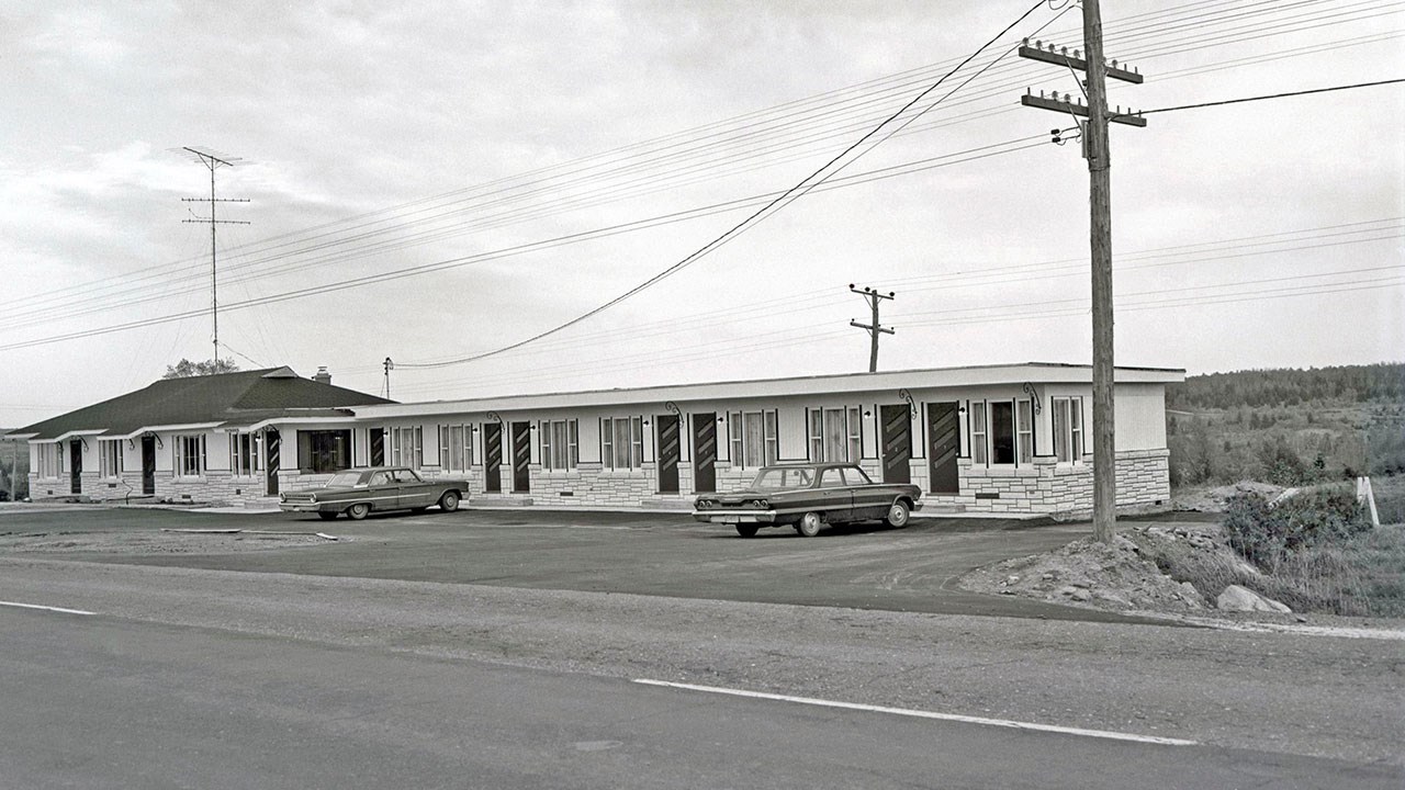 On l'appela ainsi parce qu'il était situé à la sortie sud le la ville, sur la route Kennedy (aujourd'hui 173) en direction des États-Unis (photo 1). Suite à l'incendie de sa résidence dans les années '50, M. Hormidas Lapierre s'en construisit une nouvelle de l'autre côté de la route, celle qu'on voit à la photo 2 (photo de 1959). Au départ c'était sa maison privée, mais il y a eu une classe d'école de rang dans la partie gauche (porte à gauche) où son épouse enseignait tous les degrés jusqu'à ce que les élèves aillent tous en ville. Après, M. Lapierre changea le local de cette classe en suite qu'il louait en été aux touristes. Puis il annexa 7 unités de motel à la droite de la maison (photos 3 et 4) et en ajouta 14 autres à gauche un peu plus tard, sur deux étages, soit 7 au rez-de-chaussée et 7 en-dessous auxquels on accédait par un escalier au bout des motels.