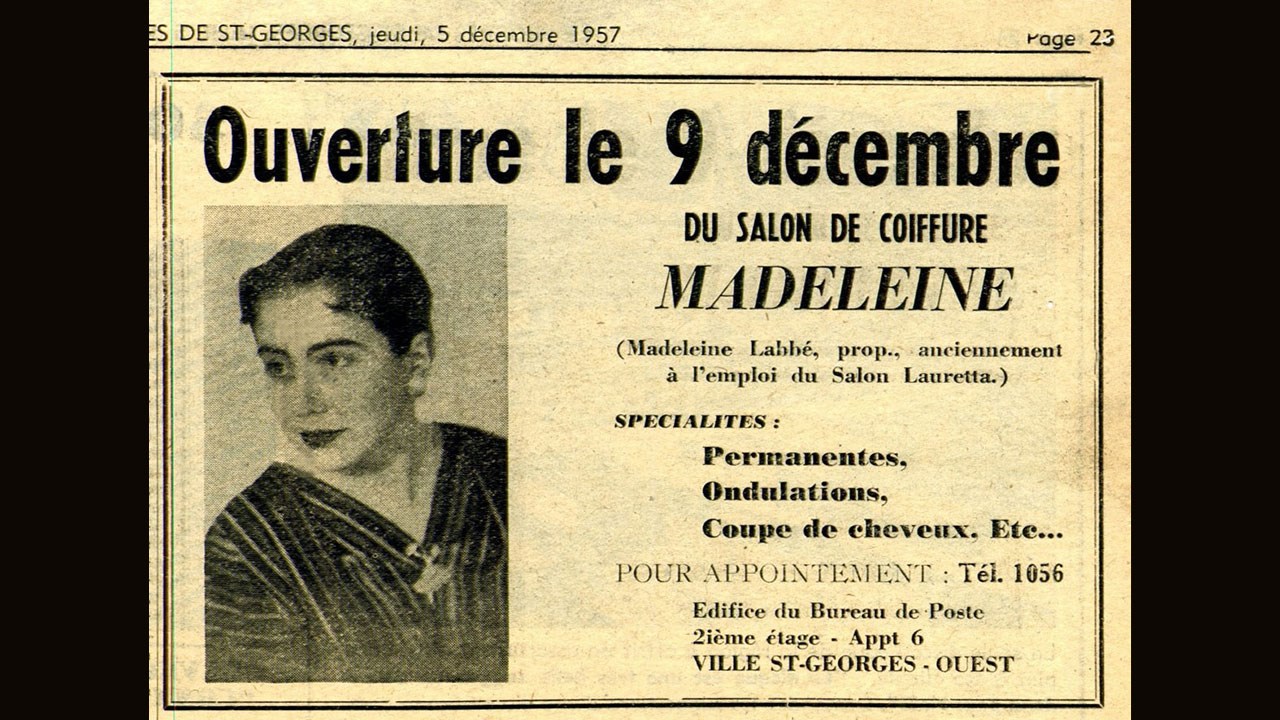 Le  9 décembre 1957, c'est Madeleine Labbé (encore bien en vie en 2023) qui a inauguré son nouveau «Salon de Coiffure Chez Madeleine» dans la 118e rue dans l'Ouest (photo 9). Celle-ci avait auparavant fait son apprentissage au Salon Lauretta. Il y en avait une autre dans l'Ouest, Colette Grenier, qui avait le Salon Colette sur la 1re avenue, à peu près en face de la 22e rue.