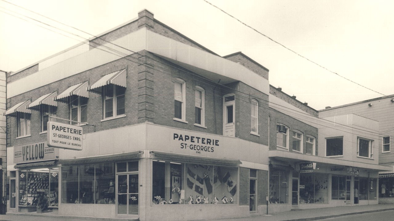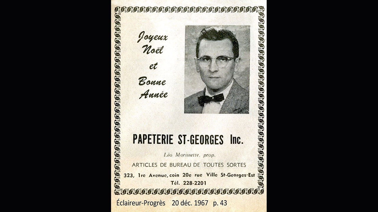 C'était autrefois la place pour la rentrée scolaire, on y trouvait tout ce qu'il fallait pour les étudiants et étudiantes. Même que bien des gens aimaient y aller pour fouiner, tellement le choix était varié. La papeterie fut fondée en 1960 par M. Léo Morissette, un homme toujours aimable et courtois. Il installa son magasin dans un édifice renommé en plein centre-ville, celui qui avait accueilli pendant plusieurs années le Salon du Meuble, à l'intersection de la 1re avenue et de la rue St-Antoine (120e rue). C'était en biais avec la banque de Montréal. Voyez l'immeuble à la photo 2. Son commerce a connu un grand succès, puisqu'il correspondait alors à un grand besoin aussi bien pour les hommes d'affaire que pour les étudiant(e)s.