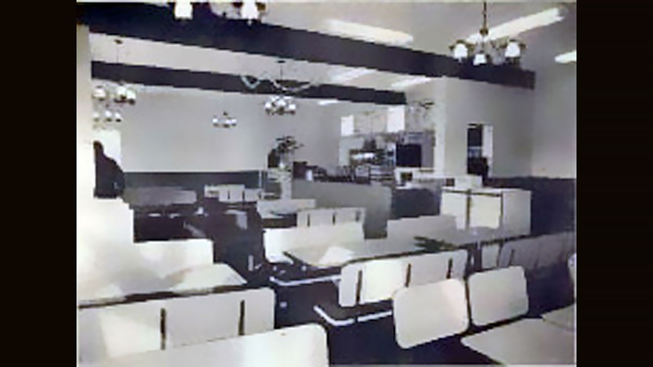 Voyez la photo de la salle à manger (photo 4). On y servait entre autres des hamburgers dont le nom variait selon la taille et les assaisonnements: Le Ranch, le Palomino, le Mustang, le Bronco et le Poney. Si vous préfériez, vous pouviez manger plutôt du poulet. Et des déjeuners en avant-midi. Pendant quelque temps au début, la cuisinière pour les déjeuners était Mme Marie-Paule Mathieu.
