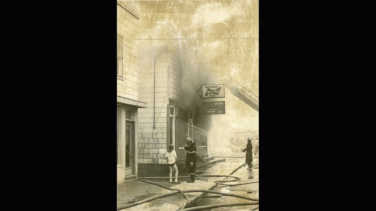 Avant de s'établir à cet endroit, les deux commerces Nordo et le Centre de l'Aspirateur avaient été situés dans un immeuble de la 2e avenue ayant appartenu à Paul-Émile Provost. Ils durent quitter en raison d'un feu qui a causé des dommages importants vers 1980, comme on le constate à la 3e photo. Ils déménagèrent donc sur la 1re avenue où ils ont subi le même sort en 1987.