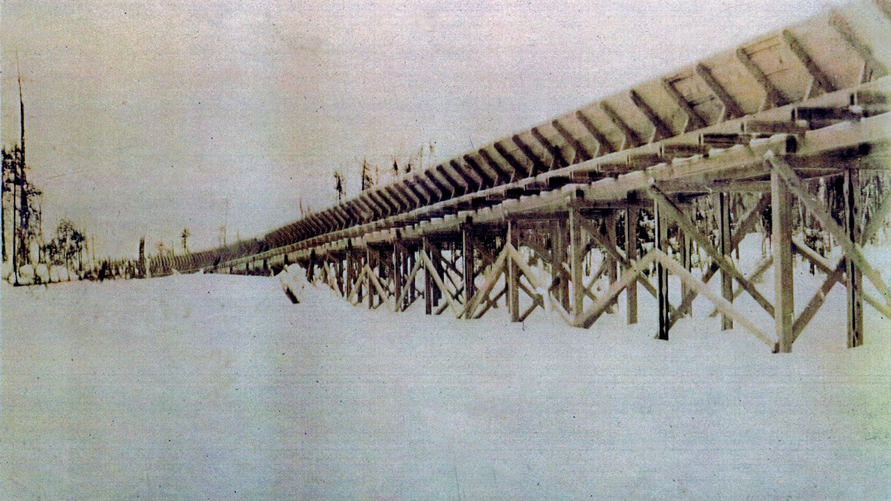 En 1918, à l'époque où Édouard Lacroix n'a que 29 ans, un des dirigeants de la Great Northern Paper Co dans le nord-est américain, Fred Gilbert, lui propose un marché important: livrer 10,000 cordes de bois de pulpe depuis le Québec jusqu'au lac Penobscot, dans le Maine. Autour d'Édouard, le contrat fait peur car le transport de tout ce bois est quasi-impossible. L'acheminement du bois exige de traverser une région montagneuse où les cours d'eau ne se rejoignent pas et où le transport terrestre n'est pas rentable. Édouard, lui, voit la situation d'un autre point de vue. S'il réussit l'exploit, il devient d'un coup un entrepreneur d'envergure. Il accepte le contrat.