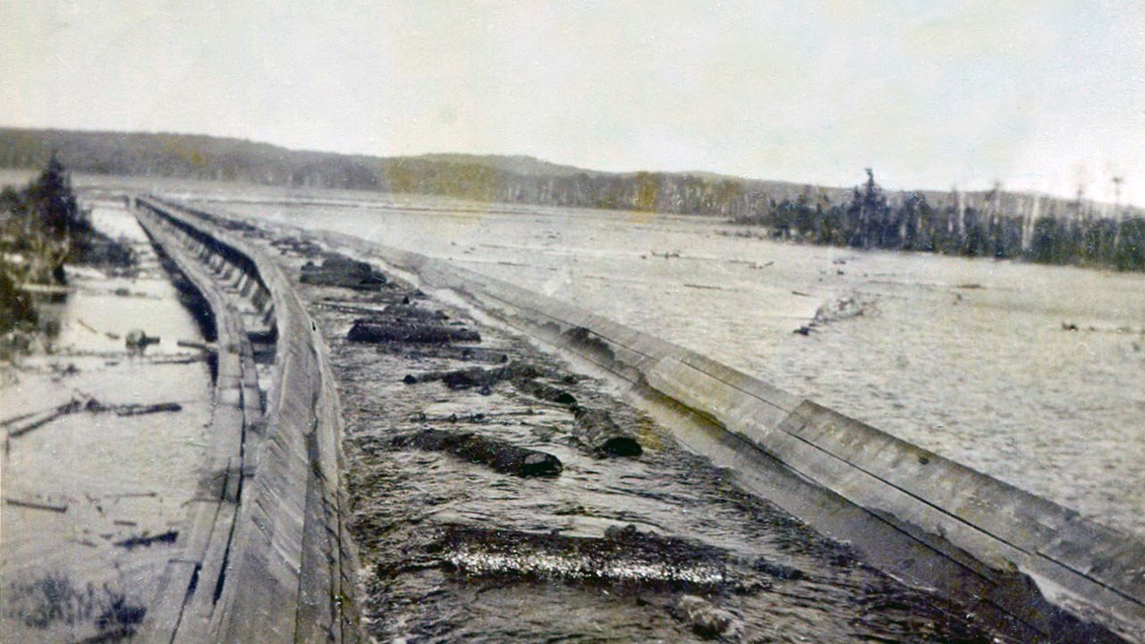 L'érection de cette imposante glissoire a duré plus d'un an. Il a fallu d'abord ériger un gros barrage à l'extrémité sud du lac Portage pour en augmenter la hauteur et constituer un immense réservoir en mesure d'accumuler des quantités énormes d'eau qui allait s'engouffrer avec force dans la glissoire en entrainant sans fin les billots coupés et rassemblés à la surface du lac. Supportée par des billots dont la hauteur atteignait parfois douze pieds, et bâtie avec de bons madriers, la glissoire, en forme de cuve, comportait une largeur de fond de 8 pieds et des appuis de côté de 4 pieds de hauteur. Elle serpentait pour contourner les montagnes et aller aboutir dans le lac Penobscot, où le bois était dravé et mené au moulin de Millinocket, situé à l'autre bout. Voyez les photos, ce fut un succès sur toute la ligne. Non seulement Édouard s'est-il mérité le respect de ses partenaires, mais il a aussi dépassé les quantités de bois prévues et réalisé des profits substantiels. Un exploit extraordinaire encore une fois.