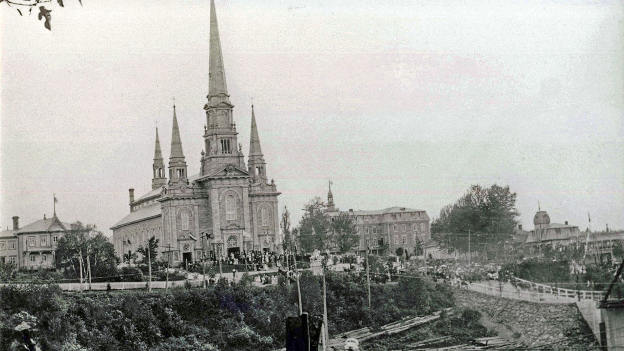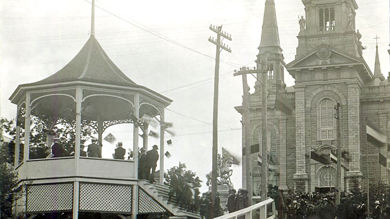 Avant l'inauguration de l'espace Carpe Diem dans le secteur des passerelles, les spectacles d'été avaient lieu à la «Place de l'Église», dans l'Ouest. En fait, cet endroit est le choeur du quartier historique de notre ville puisqu'on y retrouve cinq sites anciens importants. Il y a la salle paroissiale construite en 1939, l'ancien couvent des Soeurs du Bon-Pasteur (1923), la statue équestre de Saint Georges (1912), l'église Saint-Georges (1900-02) et le presbytère (1890). Pas surprenant que beaucoup d'activités importantes aient eu lieu à cet endroit tout au long de l'histoire de notre ville.