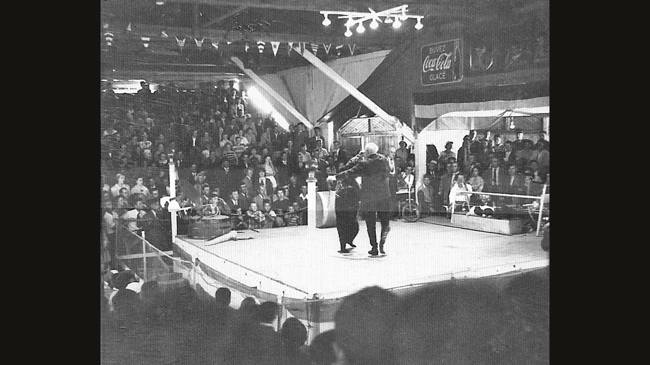 Mais c'était mal connaitre les Vallée qui, avec l'appui de nouveaux administrateurs publics, ont pu relancer leurs activités. Pitou et Rose ont alors pris la relève de l'entreprise, misant surtout sur la lutte puisque la Plage Vallée était devenue la mire des promoteurs. Au début des années '50, on y présenta même des démonstrations de «lutte» du renommé capitaine allemand William Shultz, un dompteur d'animaux. L'attraction principale du spectacle était un combat entre le capitaine et un ours (photo 5). Il y avait aussi des numéros avec des singes, des chiens, un loup, un poney et même un éléphant.
