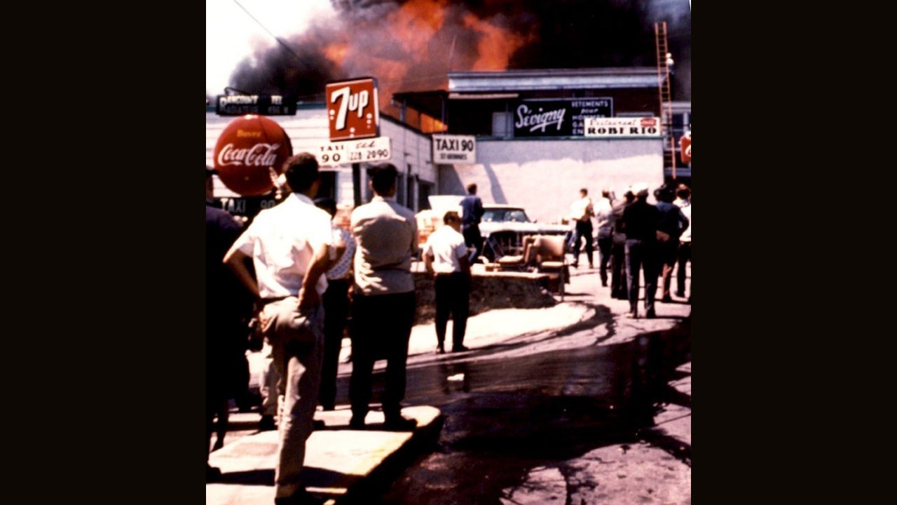 Un article de journal rapporte qu'un incendie y a causé des dommages en juillet 1960 (photo 5). Quelques années plus tard, Robert Poulin (de Saint-Odilon) a pris la relève et changea le nom pour «Café Roberto». Hélas, le commerce a de nouveau été témoin d'un feu le 16 juillet 1965. Ce fut l'un des pires incendies survenus depuis le grand feu de 1915. Plusieurs commerces importants furent rasés, dont l'Hôtel Hermandi, la Mercerie Sévigny et la magasin Robert Pépin tandis que le commerce de Marc Giguère et le Café Paris furent aussi lourdement endommagés. Une photo de cet événement nous fait voir le café Roberto au moment où les flammes détruisaient les immeubles voisins (photo 6). L'édifice logeant ce restaurant fut toutefois épargné. Quelques années plus tard, en 1969, on y logea le premier garage Datsun (aujourd'hui Nissan) à Saint-Georges (photo 7) qui appartenait alors à Bertrand Sirois. Des souvenirs qui remontent à plus de 50 ans. L'immeuble fut démoli vers 1973 lorsqu'on a élargi (entre la 2e avenue et le boulevard Lacroix) à quatre voies la 118e rue menant au pont ouvert en janvier 1971. Ainsi se termina l'histoire du Luncheonnette.