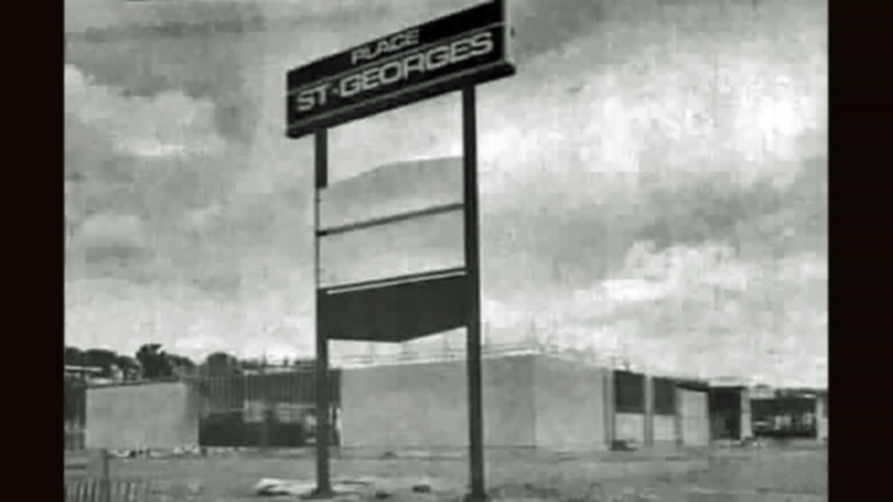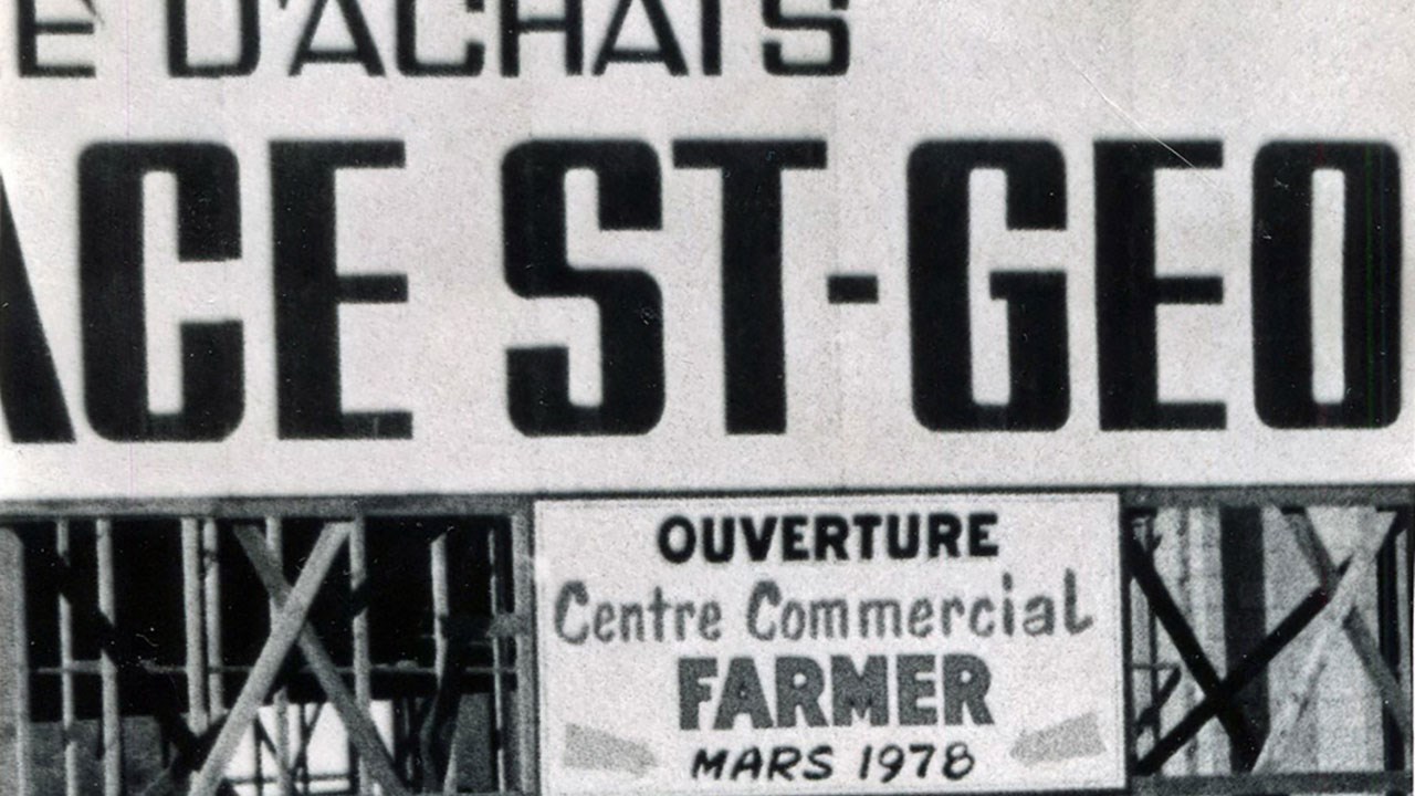 De 1974 à 1978, le noms hypothétiques de ce centre d'achats se sont multipliés: Place St-Georges, supposé ouvrir en août 1974 (photo 4), on avait même installé une grande enseigne avec ce nom (photo 5). Les Galeries St-Georges, supposé ouvrir à l'automne 1974 (photo 6). Le Centre Commercial Farmer, supposé ouvrir en mars 1978 (photo 7). Finalement le nom retenu fut Place Centre-Ville, dont l'ouverture officielle a lieu le 26 octobre 1978.