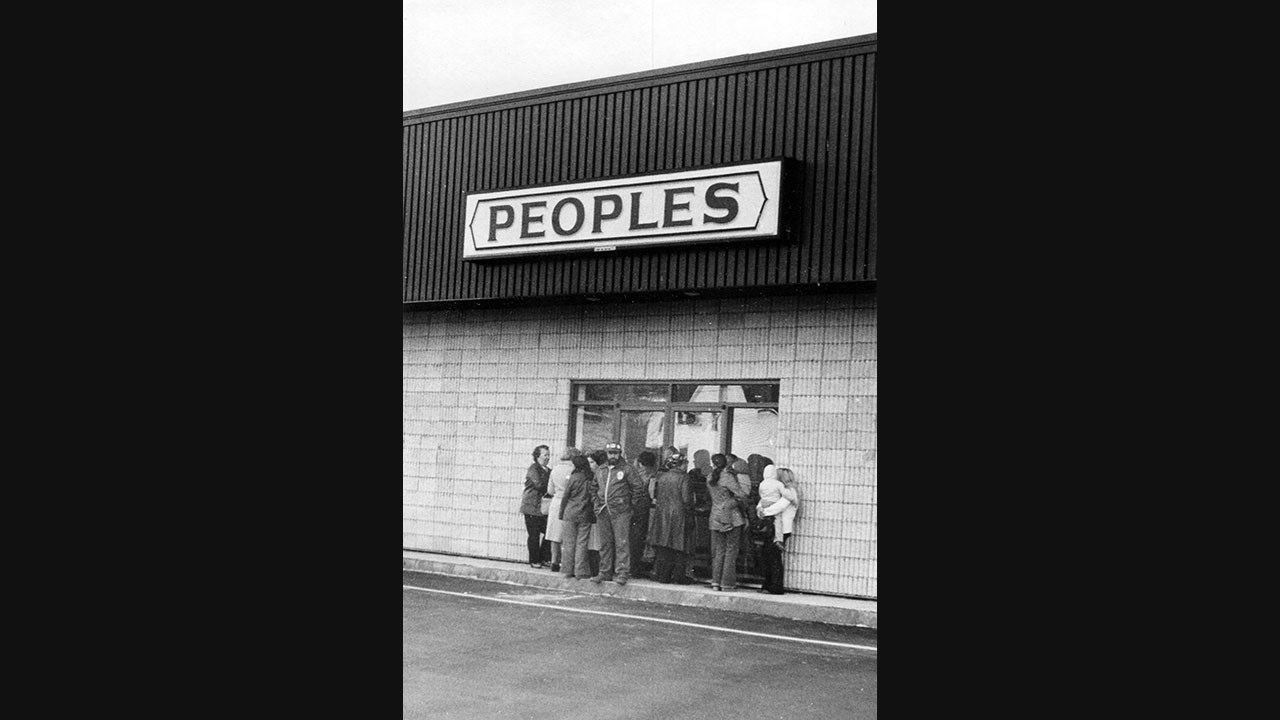 Les principaux commerces étaient au sud le magasin Farmer, au nord le magasin Peoples (photo 8 ) et à l'ouest l'épicerie Provigo de Michel Gagnon. Diverses boutiques de moindre importance étaient disséminées dans le reste du centre d'achat. Lorsque le magasin Farmer ferma en 1981, c'est la pharmacie Jean Coutu qui a pris sa place.