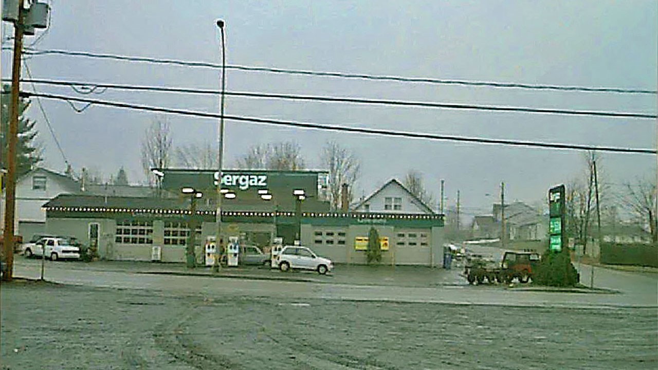 Au siècle dernier, il y avait à deux rues de chez moi un de ces garages, celui de Vénérand Larivière, construit dans les années '50 (photo 1). Il était situé sur le boulevard Dionne, entre la 10e et la 11e rue. À ses débuts, il vendait les produits Shell. Quand j'étais adolescent, c'est là que j'allais pour acheter la gazoline pour mettre dans la tondeuse, on utilisait à l'époque un gros gallon en vitre avec une petite anse, ce qui coûtait 0,35$, l'équivalent coûterait aujourd'hui pas loin de 10$. À l'extrême gauche, on discerne le bout d'un édifice à deux étages, il s'agit de la résidence de M. Vénérand Larivière, qui y exploitait également une petite épicerie genre dépanneur au rez-de-chaussée. J'allais y acheter mes cartes de hockey.