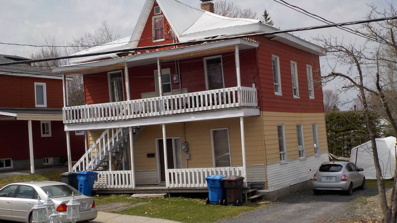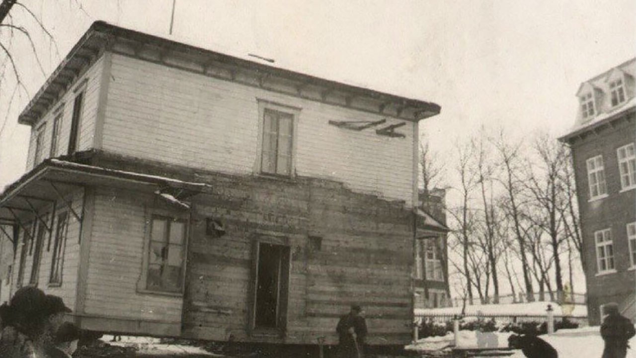 Après la construction de la salle paroissiale en 1939, on constata que la maison Gonthier était trop près, elle empiétait sur l'emplacement de la salle. Il fallait donc l'enlever. On a choisi de la déménager. La 5e photo nous la montre alors qu'elle est soulevée, prête à prendre la route, après qu'on eut enlevé la cheminée et le hangar arrière, dont on voit encore les marques sur le mur. C'est juste à l'aide d'un cheval et d'un cabestan qu'elle fut déménagée, selon un témoin qui a assisté à ce travail, M. Victor Baril. Elle fut transportée en passant par la rue qui borde encore aujourd'hui la salle paroissiale. À l'époque, en 1940, il n'y avait pas d'escalier au pied de cette rue (qui fut appelée rue Saint-Ludger dans les années '40 et '50). La maison fut donc descendue dans cette rue, puis déménagée à travers la cour de l'ancien collège, puis les champs, pour finalement être installée dans la rue Saint-Gabriel (au no 350 de la 14e rue, photo 6, de 2018). La lucarne initiale était encore sur la toiture, comme aux photos 1 et 2, c'est bien le même édifice. À cet endroit, elle fut longtemps habitée par la famille de François Roy. Elle fut démolie en 2019 pour faire place à un duplex.