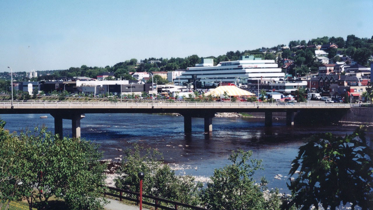 Finalement, les autorités ont accédé aux pressions des citoyens. La construction du pont actuel qui relie les deux rives du centre-ville a débuté exactement le 18 mai 1970. Sa longueur est de 650 pieds (photo 4). C'est la firme Beauval qui a obtenu le contrat, au coût de 698,542.39$. En réalité, si on inclut l'ensemble des travaux d'approche et l'élargissement de la 16e rue dans l'ouest et de la 118e rue dans l'est, le budget total fut de 2 millions $. On commença à circuler sur ce pont le 18 janvier 1971. Il a déjà plus de 50 ans, et il ne sera pas remplacé de sitôt. En effet, il est plus probable que si un développement survient à ce niveau, ce sera plutôt un autre pont qui s'ajoutera à celui qui existe déjà. Où? Personne ne le sait, attendons voir...