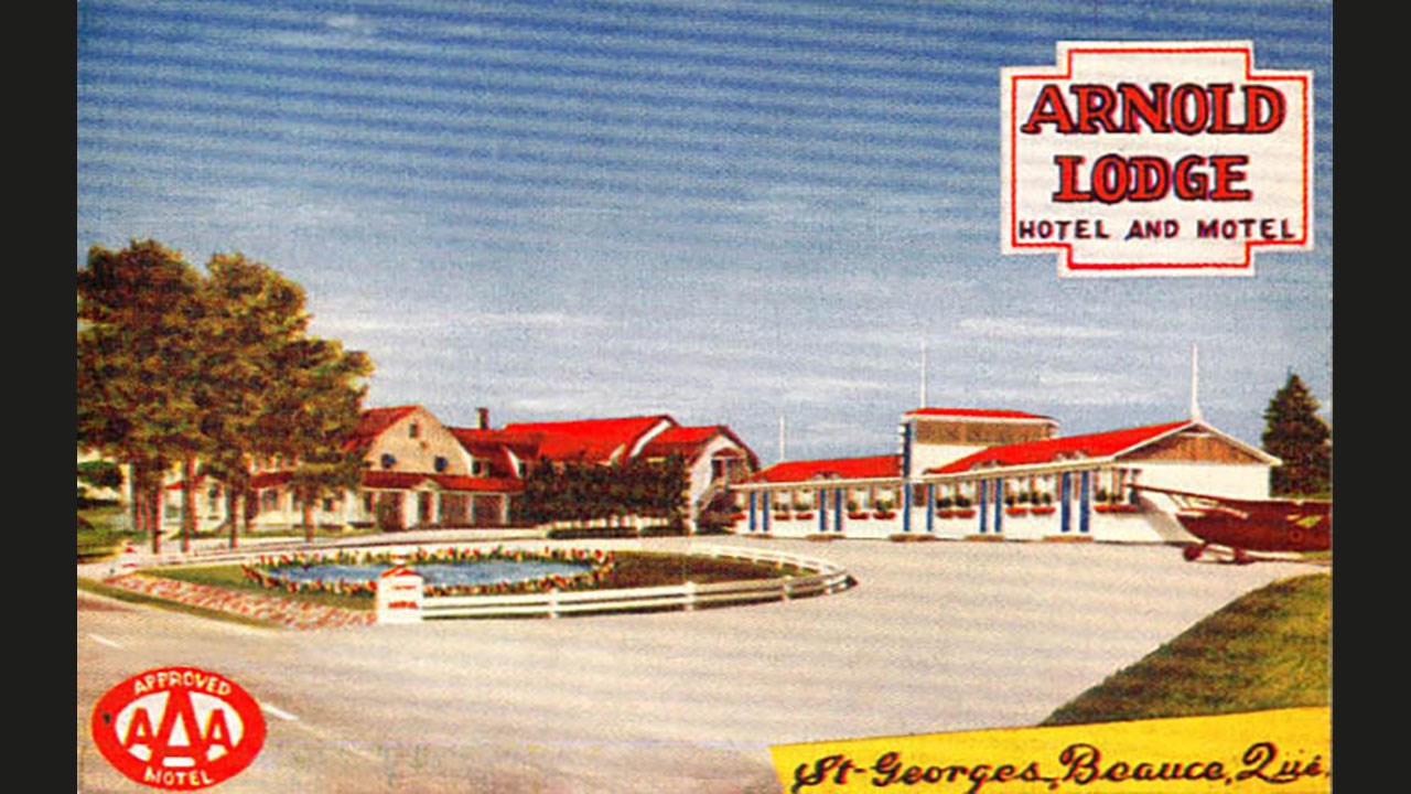 L'histoire de l'hôtel Arnold s'est déroulée sur une période de 62 ans, de 1948 à 2010. Avant sa vocation hôtelière, le premier propriétaire de l'immeuble fut l'irlandais Wilfrid Cathcart. Après son décès, sa veuve vendit cet imposant bâtiment à la compagnie forestière John Breakey Limited, en 1921. Cette importante entreprise y a établi ses bureaux et son centre administratif pour la région. Lorsqu'en 1948 l'édifice fut mis en vente, Florian Pomerleau s'en porta acquéreur. Secondé par son épouse Candide Plante, le couple y opéra avec succès l'hôtel Arnold Lodge pendant 20 ans, ne cessant d'agrandir et améliorer les lieux, incluant une piscine et un gazébo. En 1968, Marc Lapierre et sa femme Gisèle Lemieux devinrent propriétaires et renommèrent les lieux «l'Auberge Motel Benedict Arnold» en 1976.