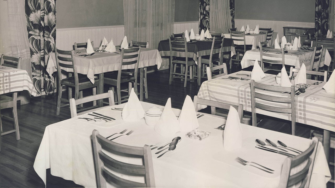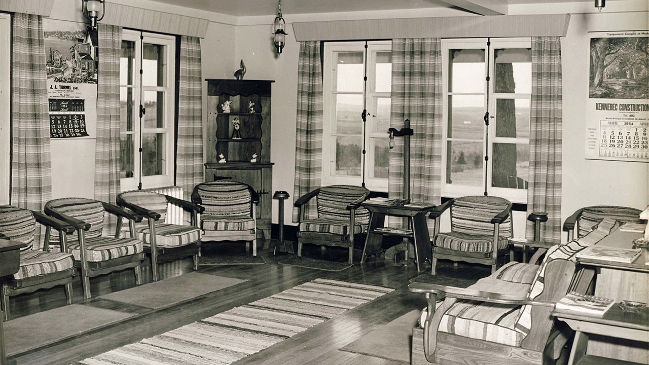 La 3e photo nous offre une vue nostalgique sur le lobby accueillant les visiteurs lors de leur séjour à cet endroit sympathique dans les années '50, '60 et '70. Et la 4e photo, de la même époque, nous donne un aperçu de la salle à manger du restaurant situé à l'avant, au rez-de-chaussée.