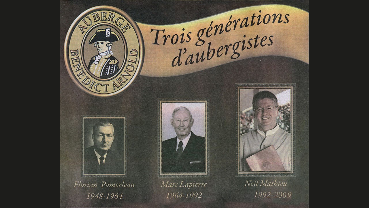 À la fin des années '70, on s'affilia à la Chaîne Hôte. En 1981, l'Auberge Benedict Arnold fut élue Hôtelier de l'année au Québec. Ce fut un endroit reconnu. De grands personnages y ont logé: Pierre-Elliot Trudeau, Robert Bourassa, Jacques Parizeau, René Lévesque, Brian Mulroney, les artistes Johnny Hallyday, Jean Lapointe, Dominique Michel, la troupe de Broue et bien d'autres. Les propriétaires successifs ont su s'entourer d'un personnel compétent, comme en a témoigné l'épouse de M. Lapierre: «Nous leur sommes reconnaissants, ils ont travaillé si fort pour nous. Jamais nous ne les oublierons». Une photo qui vous rendra nostalgique: une carte postale de cet établissement inoubliable, dans les années '60 (photo 5).