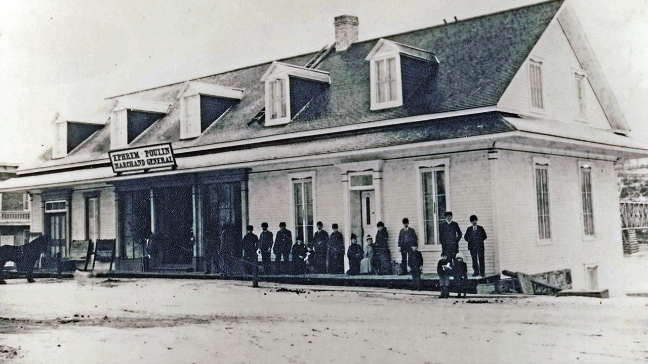 Il y eut autrefois, il y a très longtemps, deux commerçants du nom d'Ephrem Poulin (tous deux nés dans les années 1800) ayant fait affaires sur la première avenue au centre-ville. Celui dont il est question ici fut le premier, né en 1838, 46 ans avant l'autre. Notre Ephrem Poulin, celui dont on parle ici, était marchand tandis que le dernier a été bijoutier.