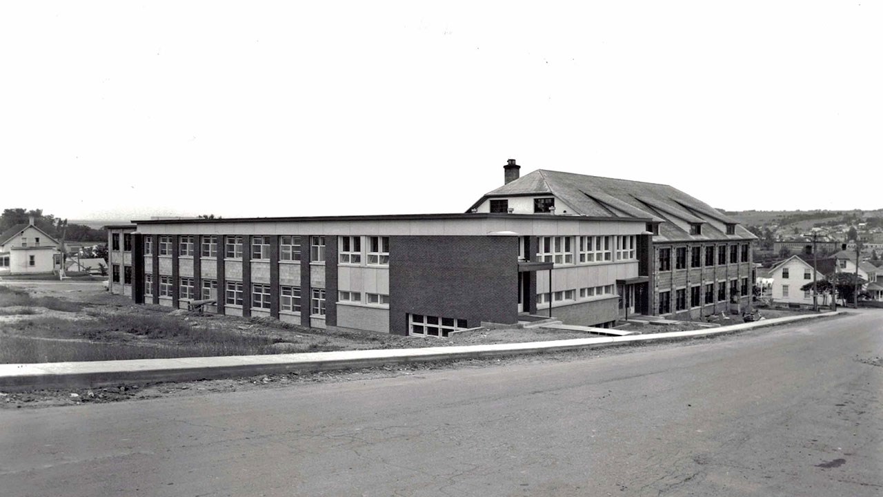 Au cours des années '50, l'importation de talons de plastique entraina une importante diminution des affaires de notre usine de talons, si bien qu'on abandonna finalement ce domaine. Un incendie a lourdement endommagé l'édifice vers 1958, voyez une photo à la même époque (photo 5). Cet immeuble a donc été d'abord la manufacture de talons (de 1938 à 1958). On l'a agrandie et le transformée en 1959 pour y loger la manufacture de chaussures (photo 6).