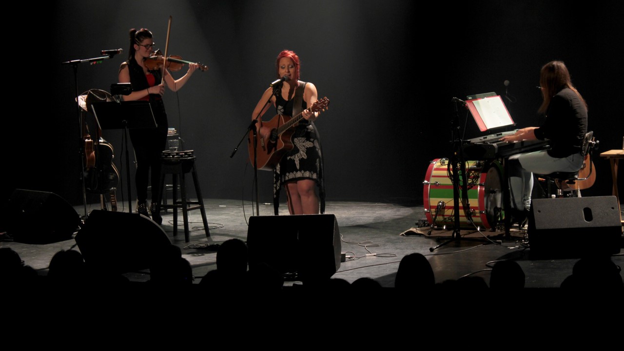 Johanne Aubé était accompagnée de deux musiciennes chevronnées, dont la violoniste Vicky Vachon et la claviériste Michelle Lambert du groupe Noir Silence