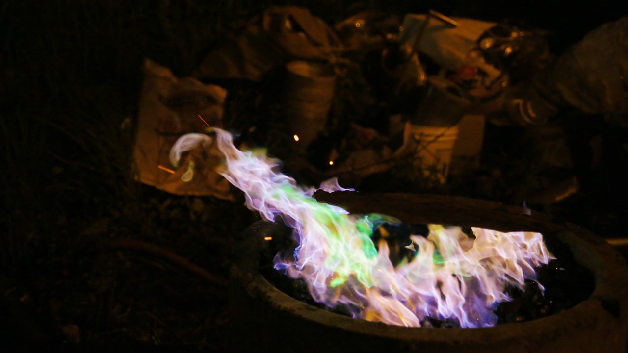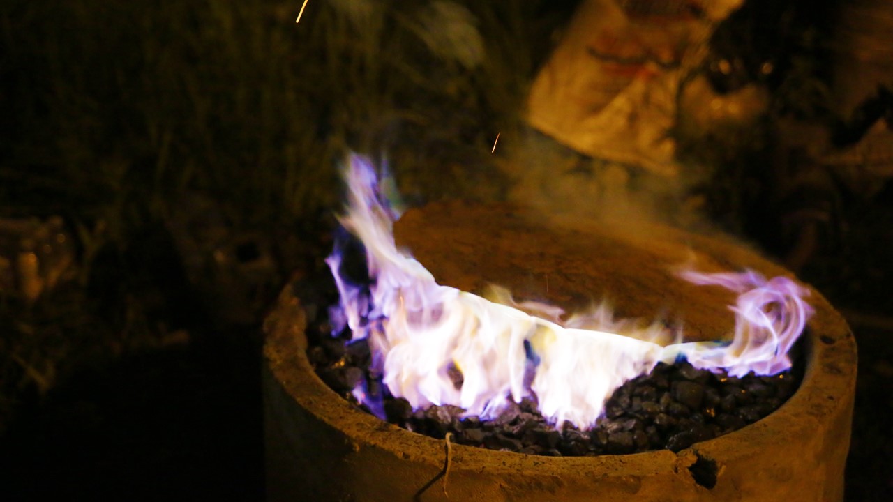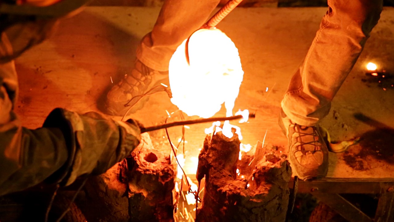 En ce qui concerne la fonte des métaux, Paul Duval et Siriki Ky ont fabriqué un four dans lequel un récipient résistant aux hautes températures y était entouré de charbon. Pour obtenir des flammes vives, un tuyau d’air à pression soufflait en continu sous le foyer. Puis, les artistes ont déposé dans le récipient des pièces de bronze et ont attendu patiemment que celles-ci soient réduites à l’état liquide.