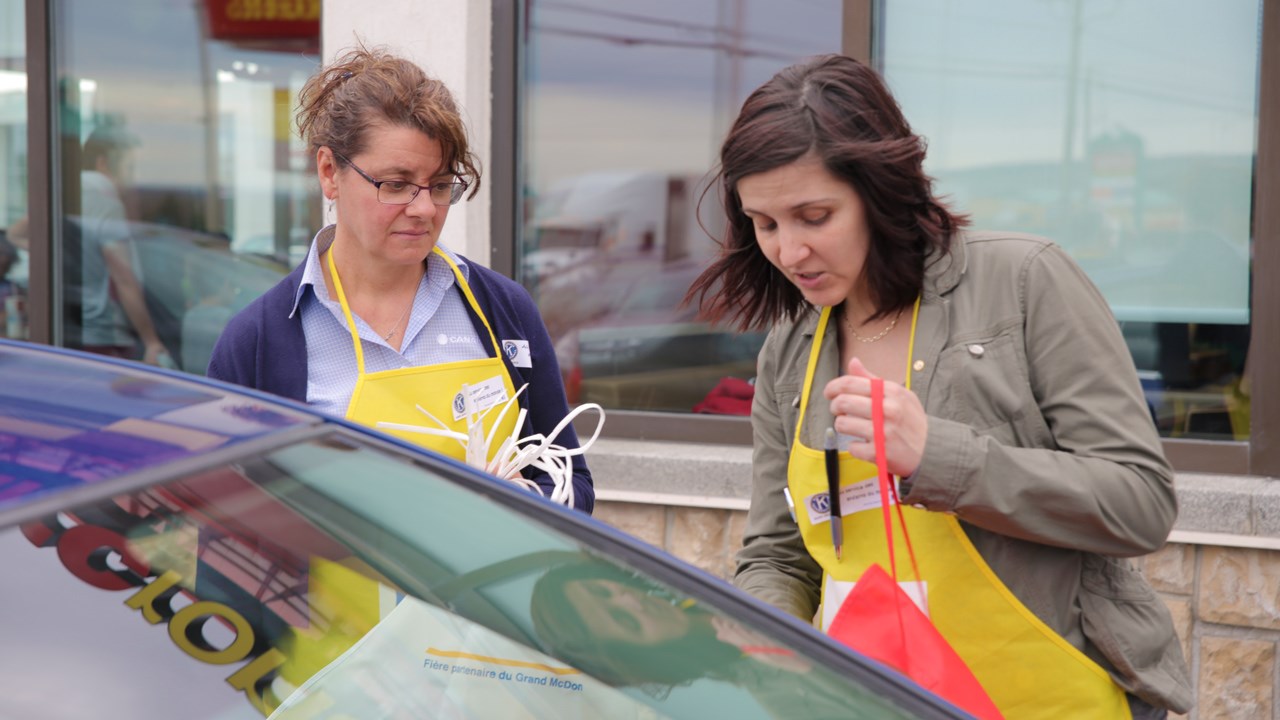 Les bénévoles ont travaillé fort à l'extérieur du restaurant afin de vendre des articles promotionnels dont les recettes seront remises au Club des Kiwanis.
