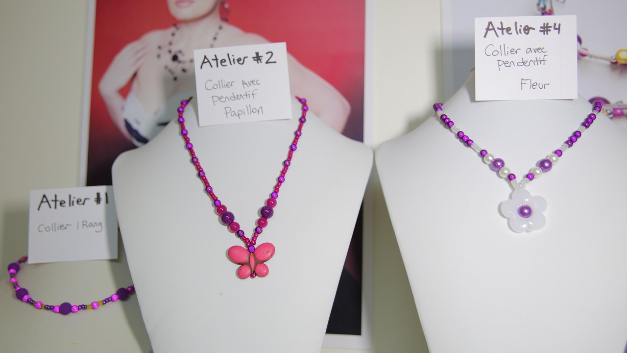 Afin de créer ses œuvres, l’artiste s’inspire principalement de la matière qu’elle possède. « En ayant la matière entre les mains, c’est là qu’une idée en entraine une autre », indique-t-elle. À cet effet, notons que les matériaux utilisés par celle-ci, soit des perles de bois, de résine, de plastique et de métal, s’avèrent généralement abordables et lui permettent d’offrir des prix raisonnables en magasin. D’ailleurs, le rapport qualité-prix du produit semble en satisfaire plusieurs puisque la joaillerie jouit d’une clientèle bien établie depuis 2008.