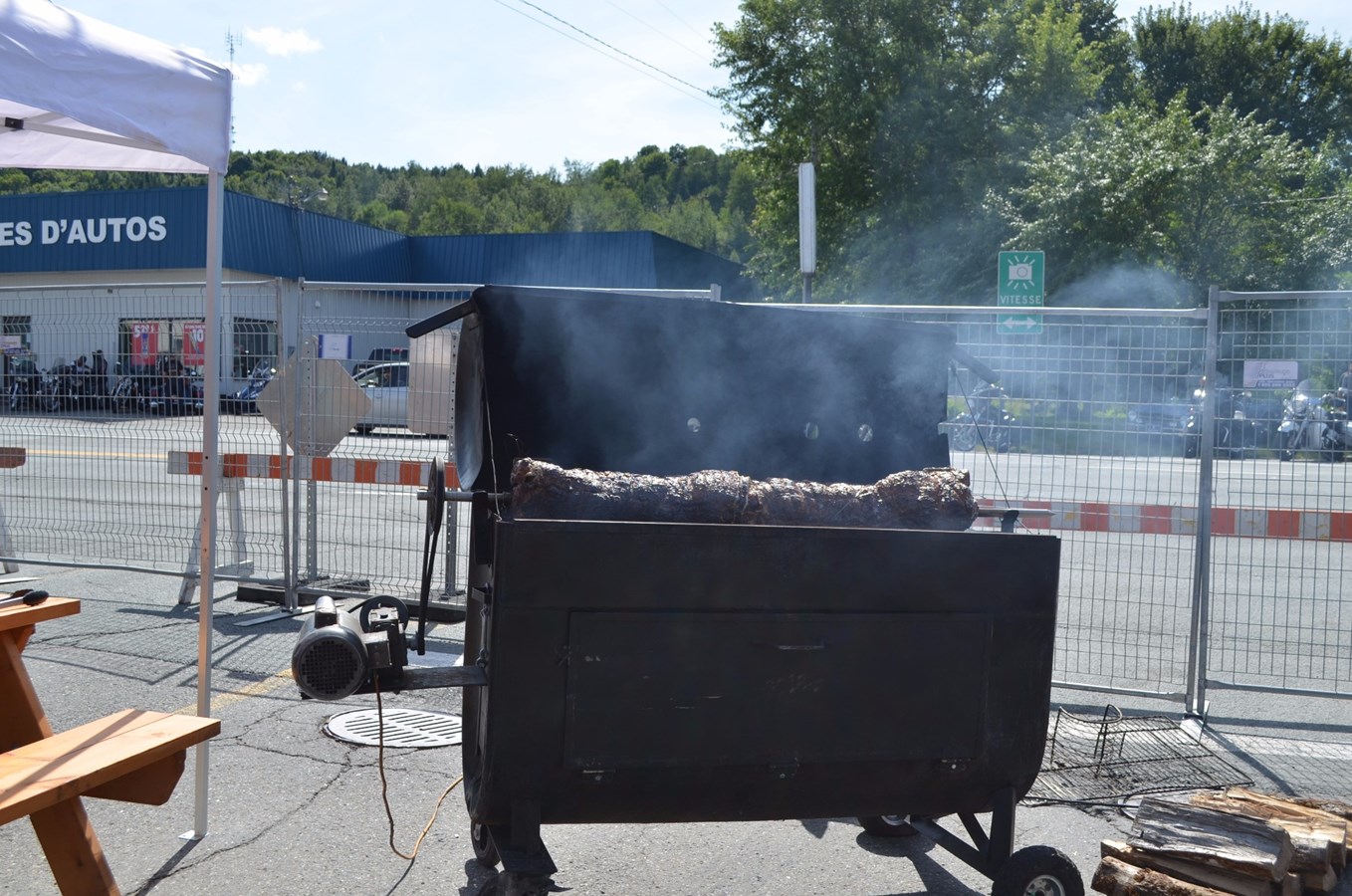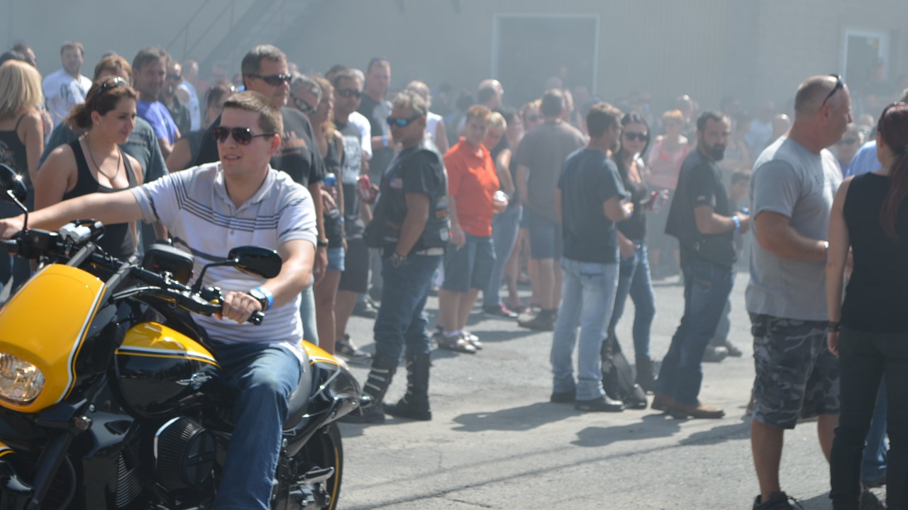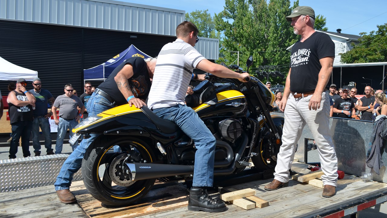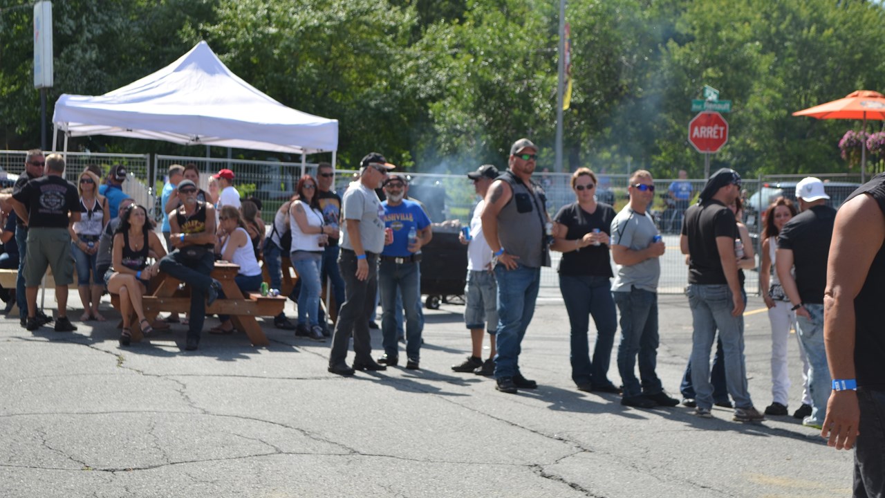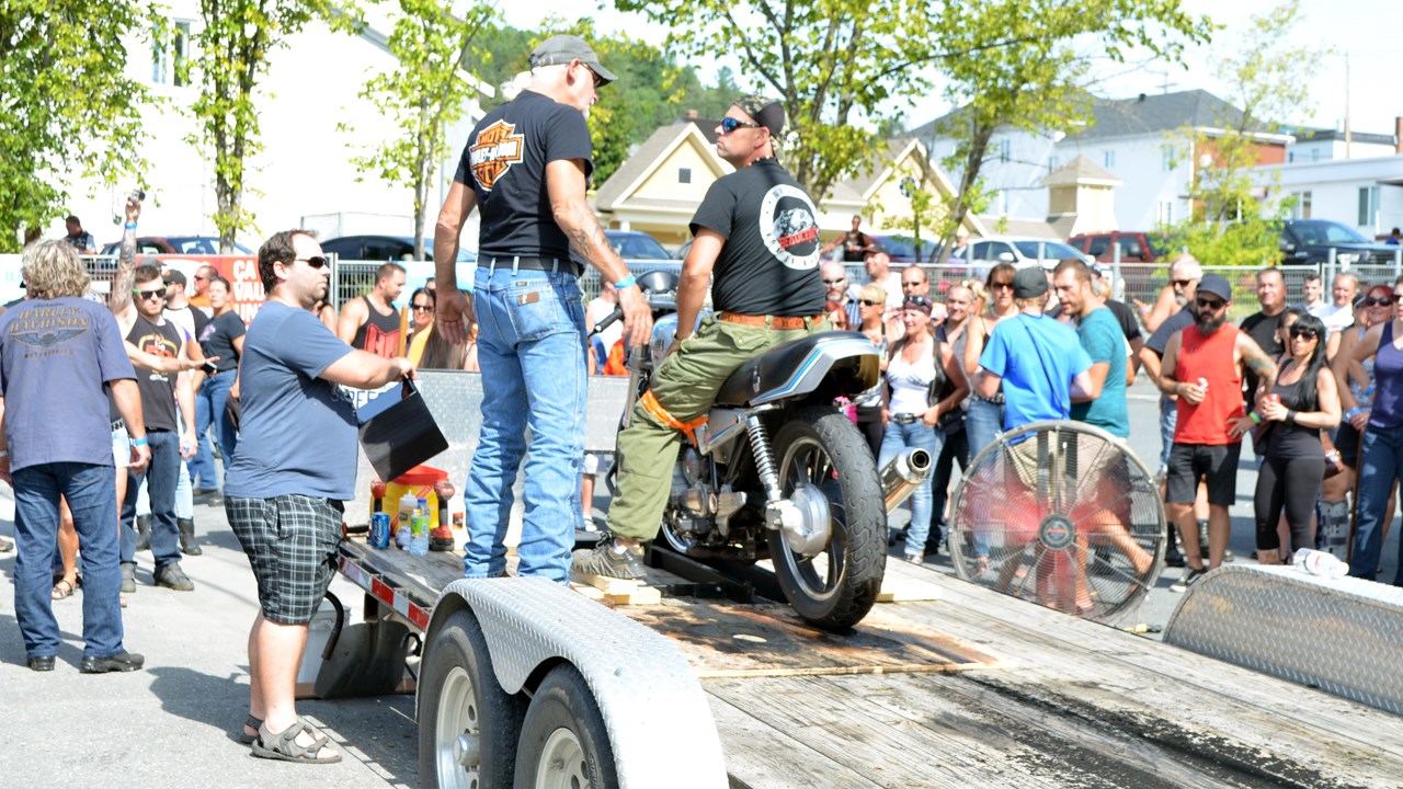 Quelques centaines d'amateurs de motos se sont réunis sur place pour participer à l'événement. Tout au long de l'après-midi, les motocyclistes ont été invités à participer au « show de boucane ». Les intéressés ont enfourché leur véhicule et se sont rendus sur une remorque aménagée à cet effet, attirant au passage bon nombre de spectateurs. Lors de leurs démonstrations, il n'était pas rare de perdre de vu les participants, tant la fumée blanche à l'odeur de caoutchouc brûlé était opaque. En retour, ils ont obtenu un billet pour manger gratuitement.