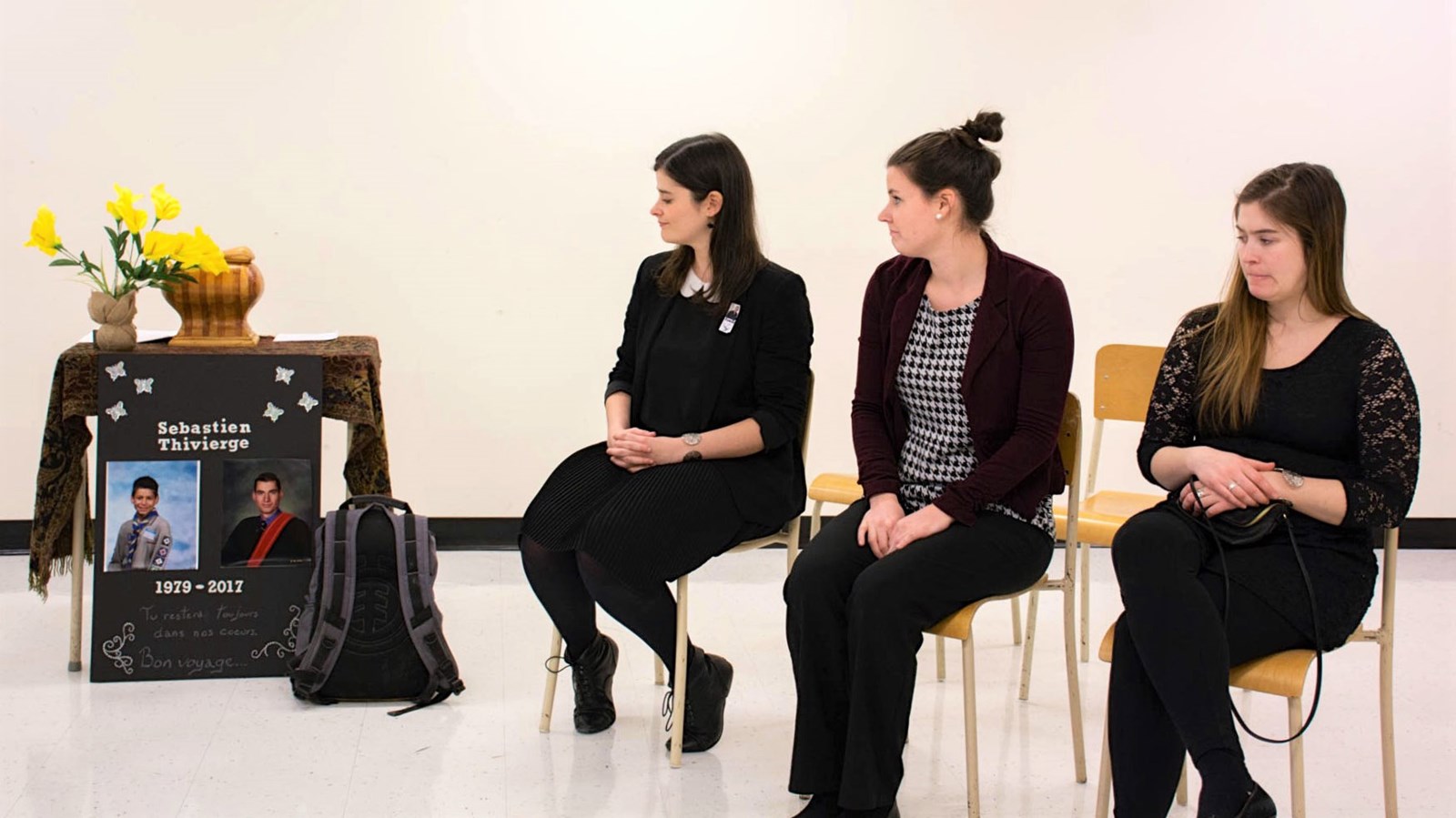 « L'équipe de la maison funéraire Seconde Vie vous invite à venir souligner le départ hâtif de M. Sébastien Thivierge. Parents et amis vous attendrons, dès 20 h, pour une cérémonie de la parole. En raison du caractère particulier de ces funérailles, il serait préférable de réserver votre place. Vos témoignages de sympathie se traduiront par un don de 15 $ à la troupe de théâtre La Meute », peut-on lire sur l'événement Facebook dédié à la représentation du 17 juin.
