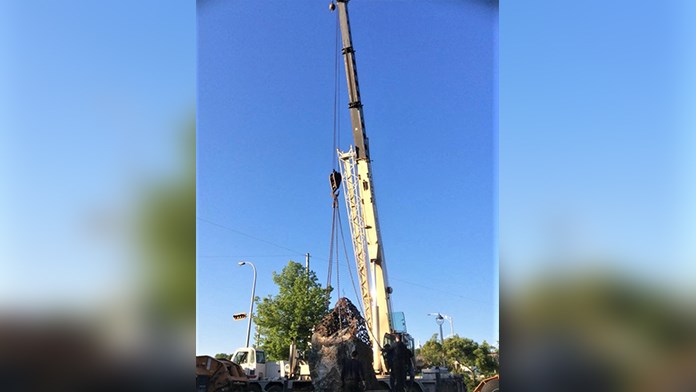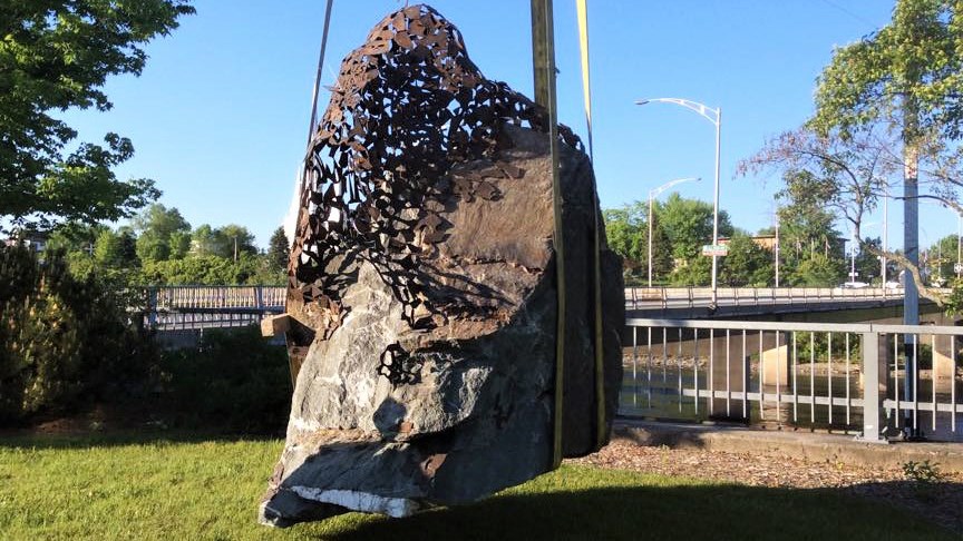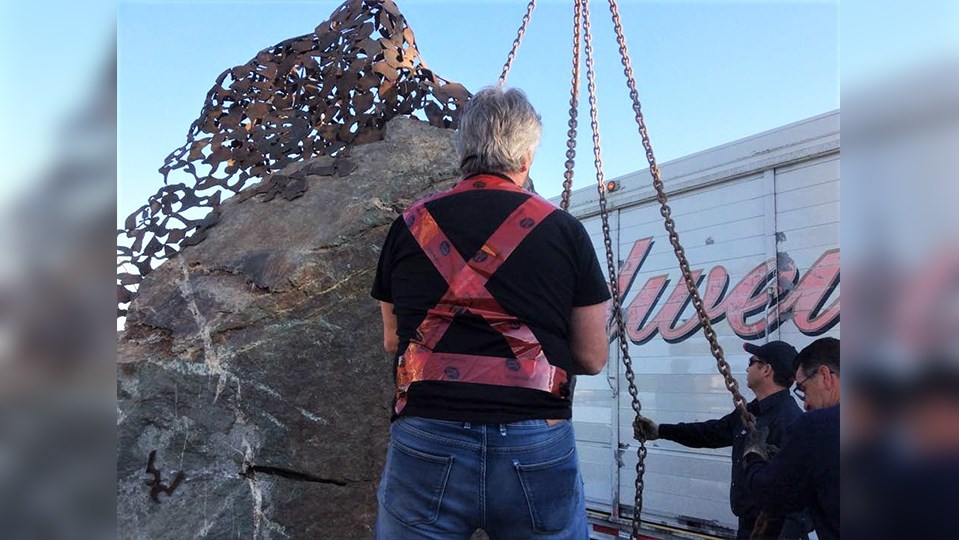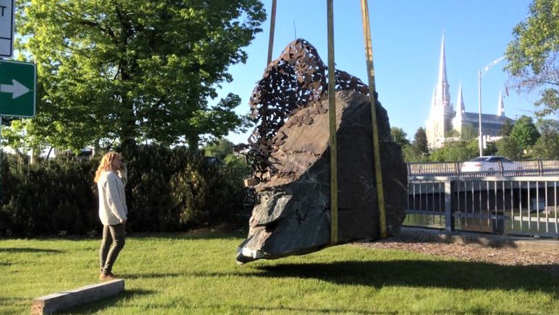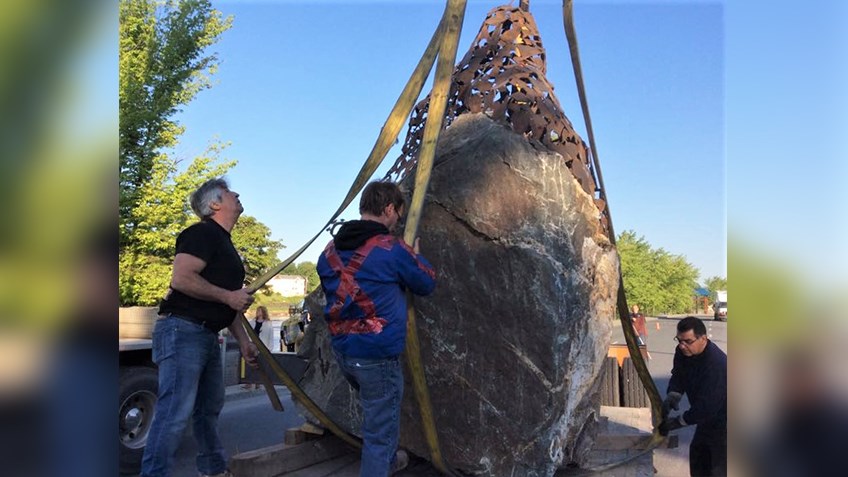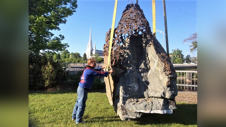 La première sculpture du 4e Symposium international de la sculpture de Saint-Georges à être complétée a été installée ce matin au coin de la Promenade Redmond et de la 118e Rue, près du pont David-Roy.