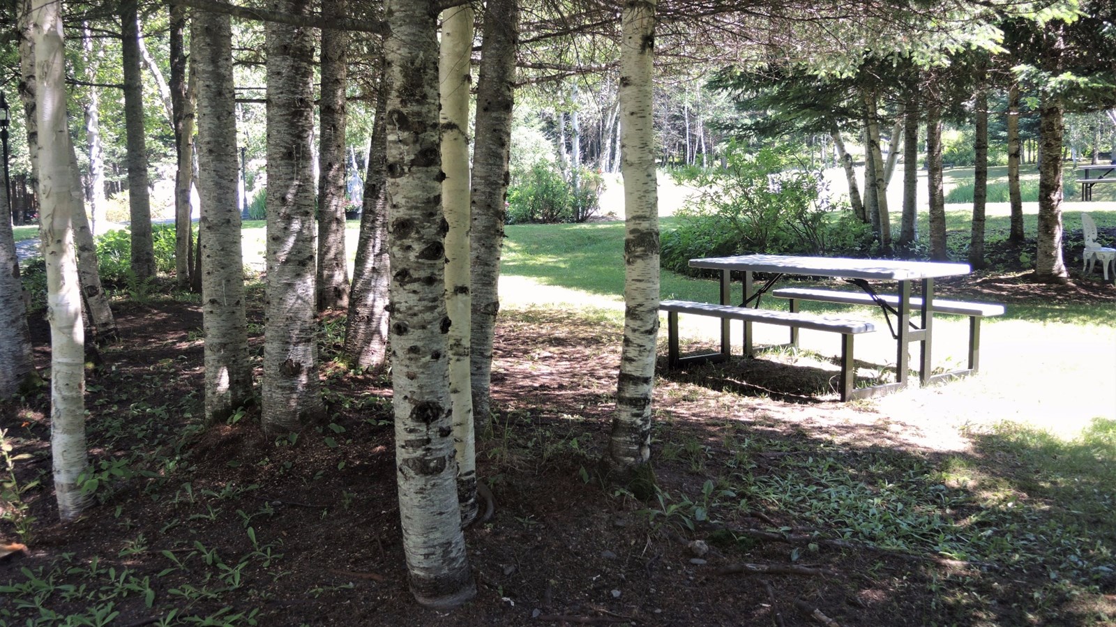 Quatre tables de pique-nique ont été installées au jardin Harbottle, situé à Saint-Simon-les-Mines, pour l'été 2017.