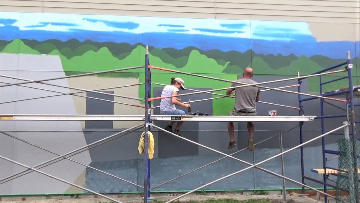 Notre vidéaste junior Pascal Goyette présente l'évolution de la fresque à Place Bureau