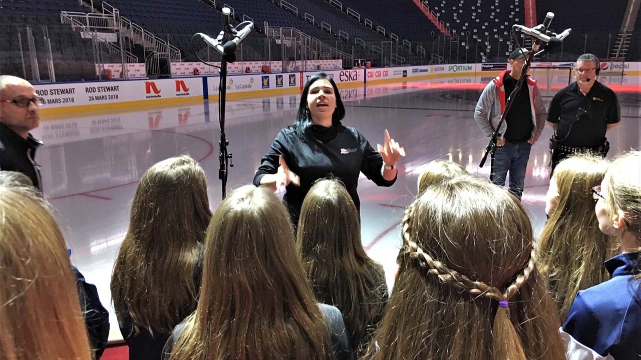 Les élèves beaucerons ont eu la chance d'interpréter l'hymne national dans le cadre de l’événement « Star d'un soir » organisé par les Remparts.