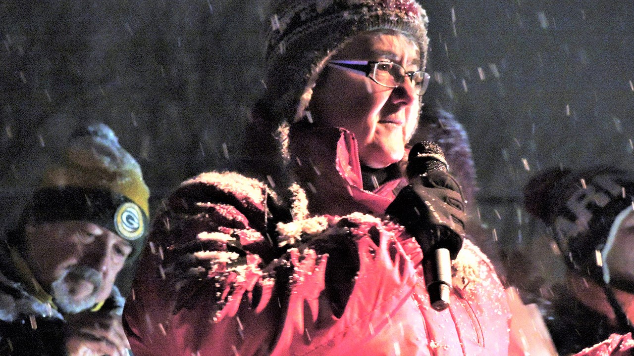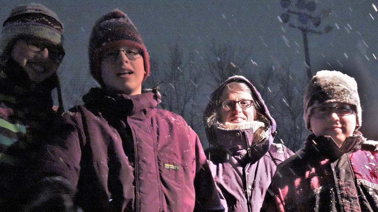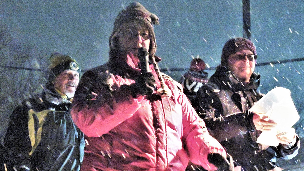 La directrice du Service des loisirs et de la culture de la Ville de Saint-Georges, Carole Paquet, en rose sur la photo, a animé la cérémonie de remise de prix du 19e Festival de sculptures sur neige de Saint-Georges lors du samedi 10 février 2018.